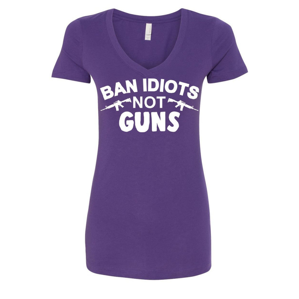 BAN IDIOTS NOT GUNS women's v-neck t-shirt patriot 2nd amendment pro guns arms purple