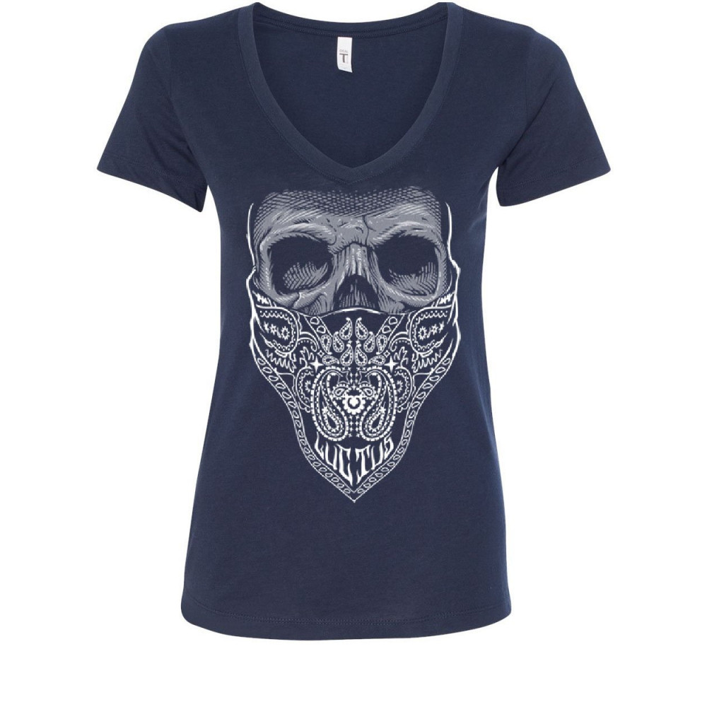 BANDANA SKULL women's v-neck t-shirt badass gangsta swag dead navy blue