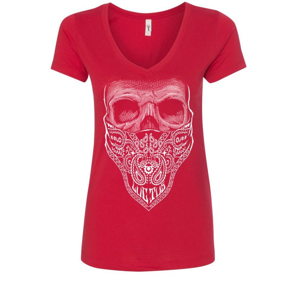 BANDANA SKULL women's v-neck t-shirt badass gangsta swag dead red