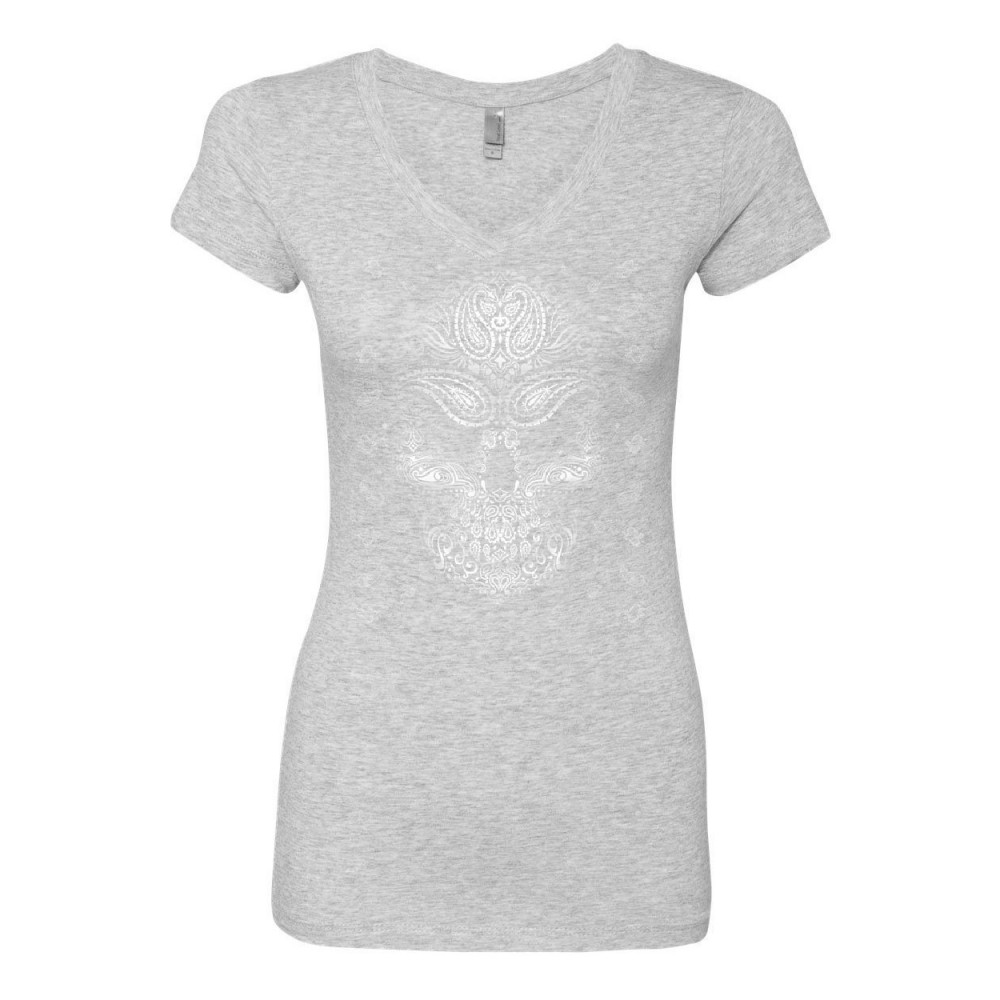 BANDANA SKULL FACE women's v-neck t-shirt gangsta badass swag urban skeleton gray