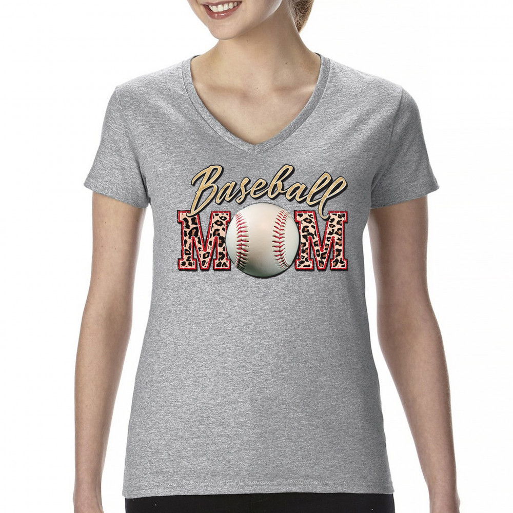 Show your baseball mom pride with this stylish design featuring leopard print "MOM" text and a baseball graphic. Perfect for game days and casual outings.