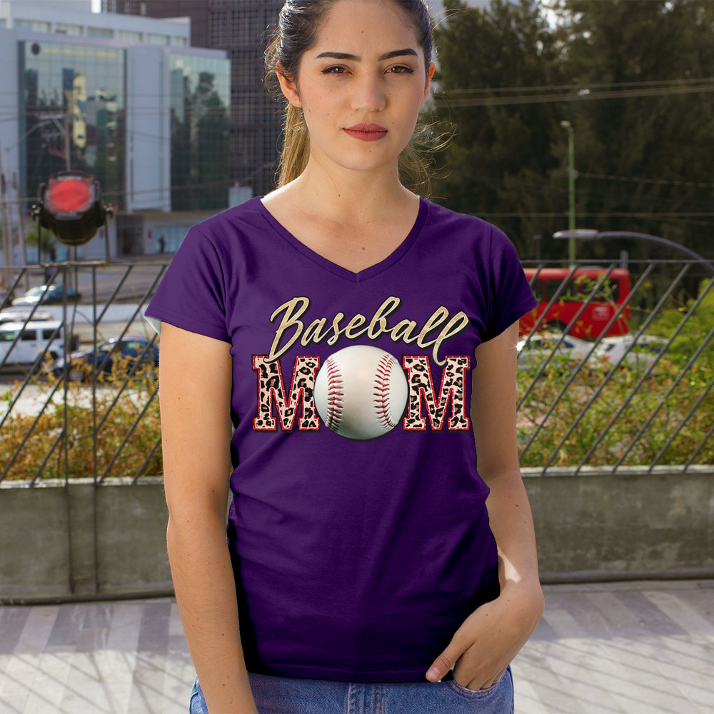 Celebrate your role as a proud baseball mom with this eye-catching design, featuring a striking leopard print "MOM" text and a classic baseball graphic. Perfect for showing off your love for the game and your support for your favorite player, this design is ideal for game days, practices, and everyday wear. Crafted to keep you looking stylish and feeling comfortable, it's a great gift for any mom who loves baseball. Add this unique piece to your collection and stand out from the crowd.