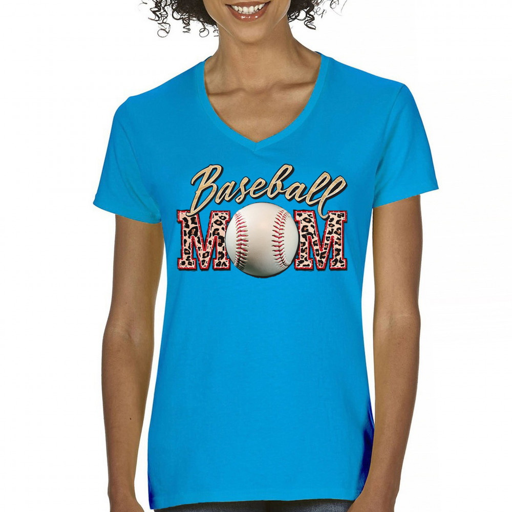 Show your baseball mom pride with this stylish design featuring leopard print "MOM" text and a baseball graphic. Perfect for game days and casual outings.