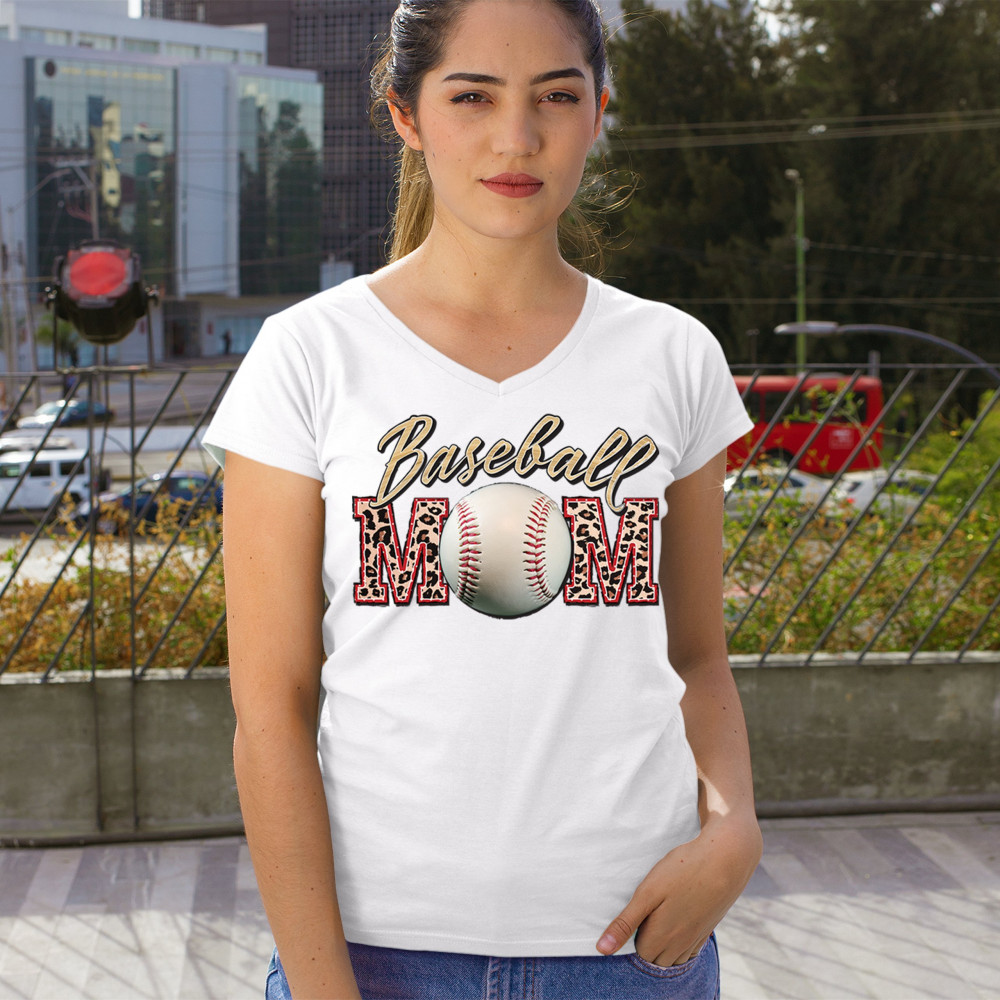 Show your baseball mom pride with this stylish design featuring leopard print "MOM" text and a baseball graphic. Perfect for game days and casual outings.