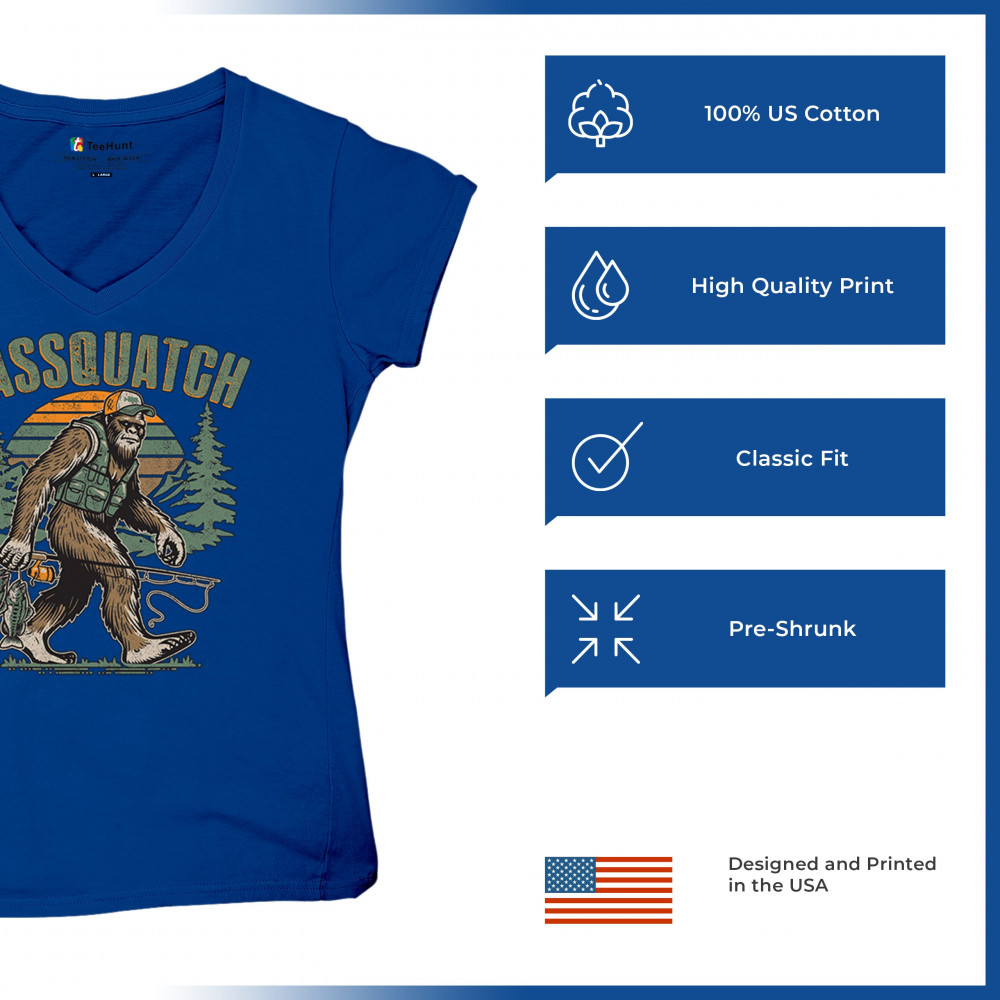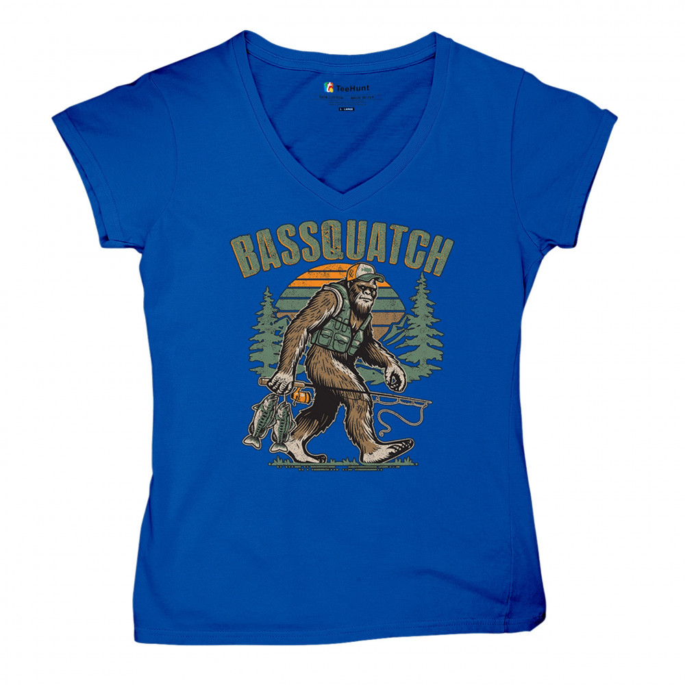 Funny Bassquatch design blends Bigfoot, fishing humor, and retro forest style. Great for anglers, cryptid lovers, and outdoorsy pun fans.