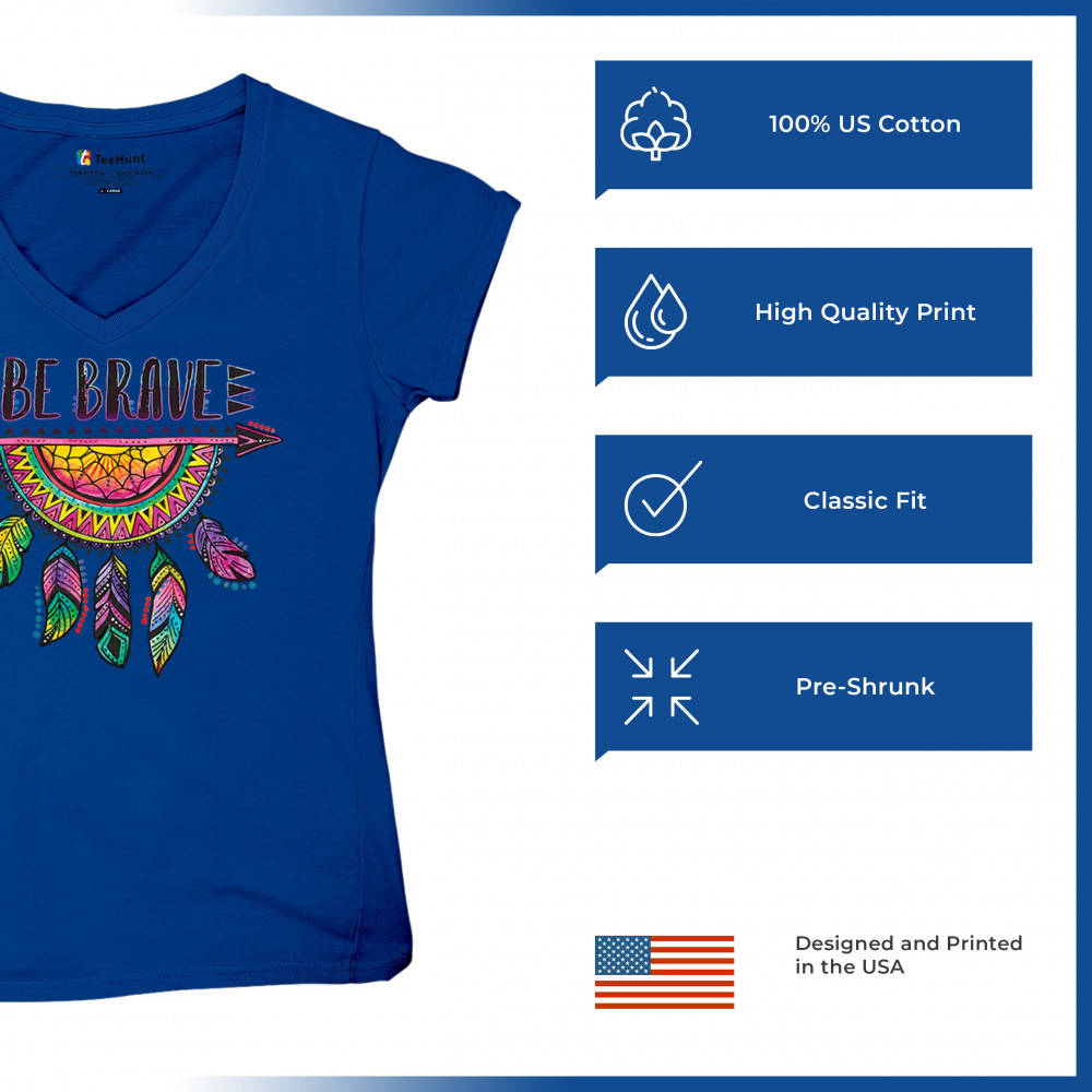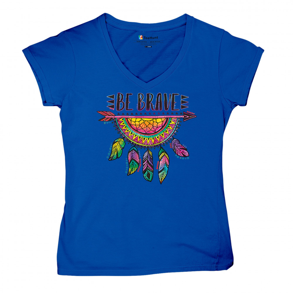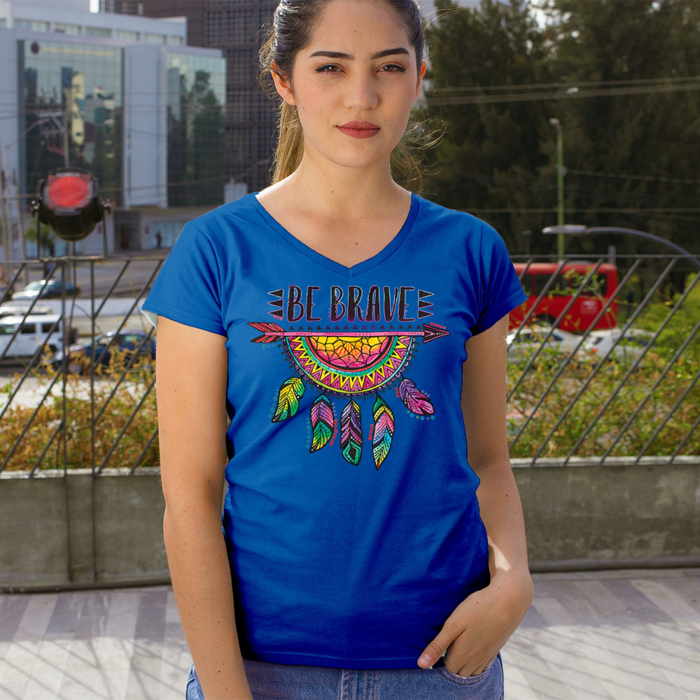 BE BRAVE DREAM CATCHER women's v-neck t-shirt dean russo motivation yolo tee royal blue