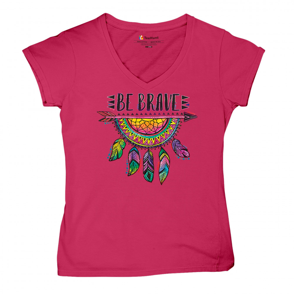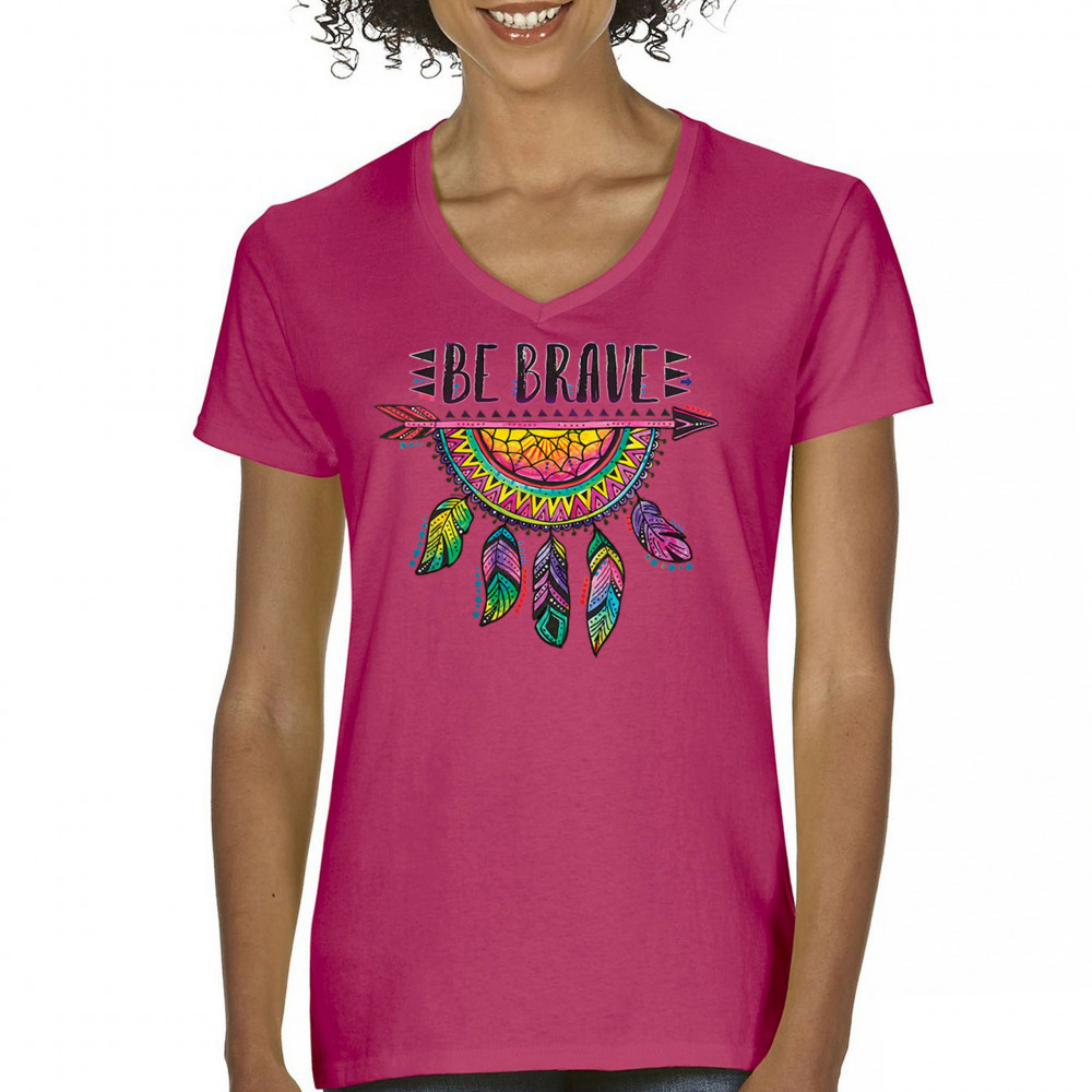 BE BRAVE DREAM CATCHER women's v-neck t-shirt dean russo motivation yolo tee pink
