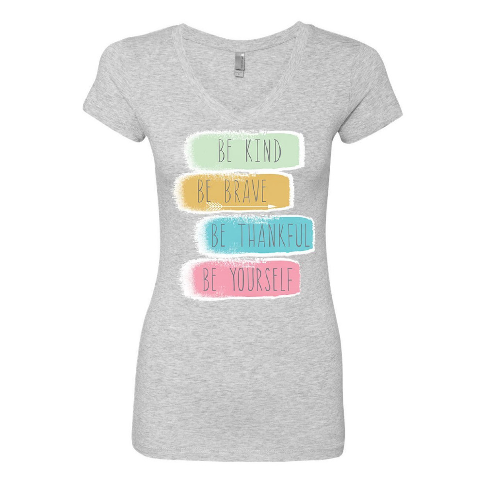 BE YOURSELF be kind brave thankful women's v-neck t-shirt motivation positive gray