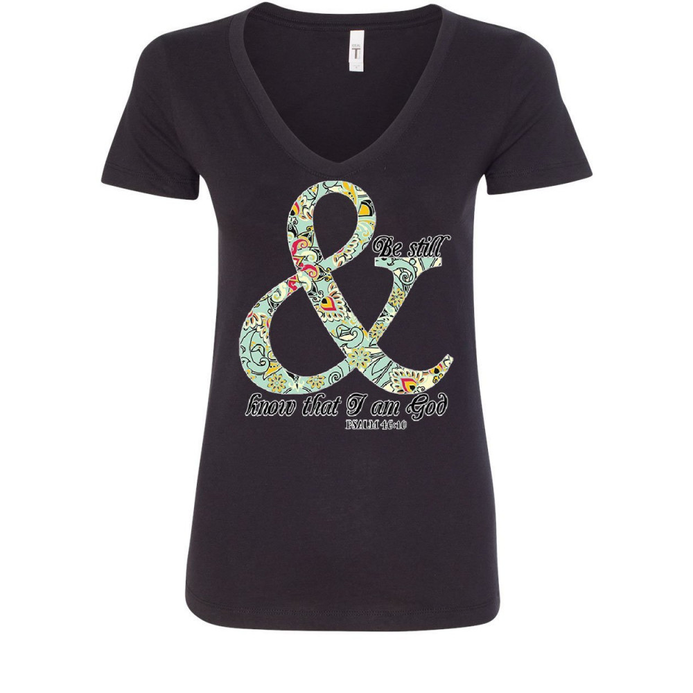 BE STILL & KNOW THAT I AM GOD women's v-neck t-shirt religion bible psalm 46:10 black