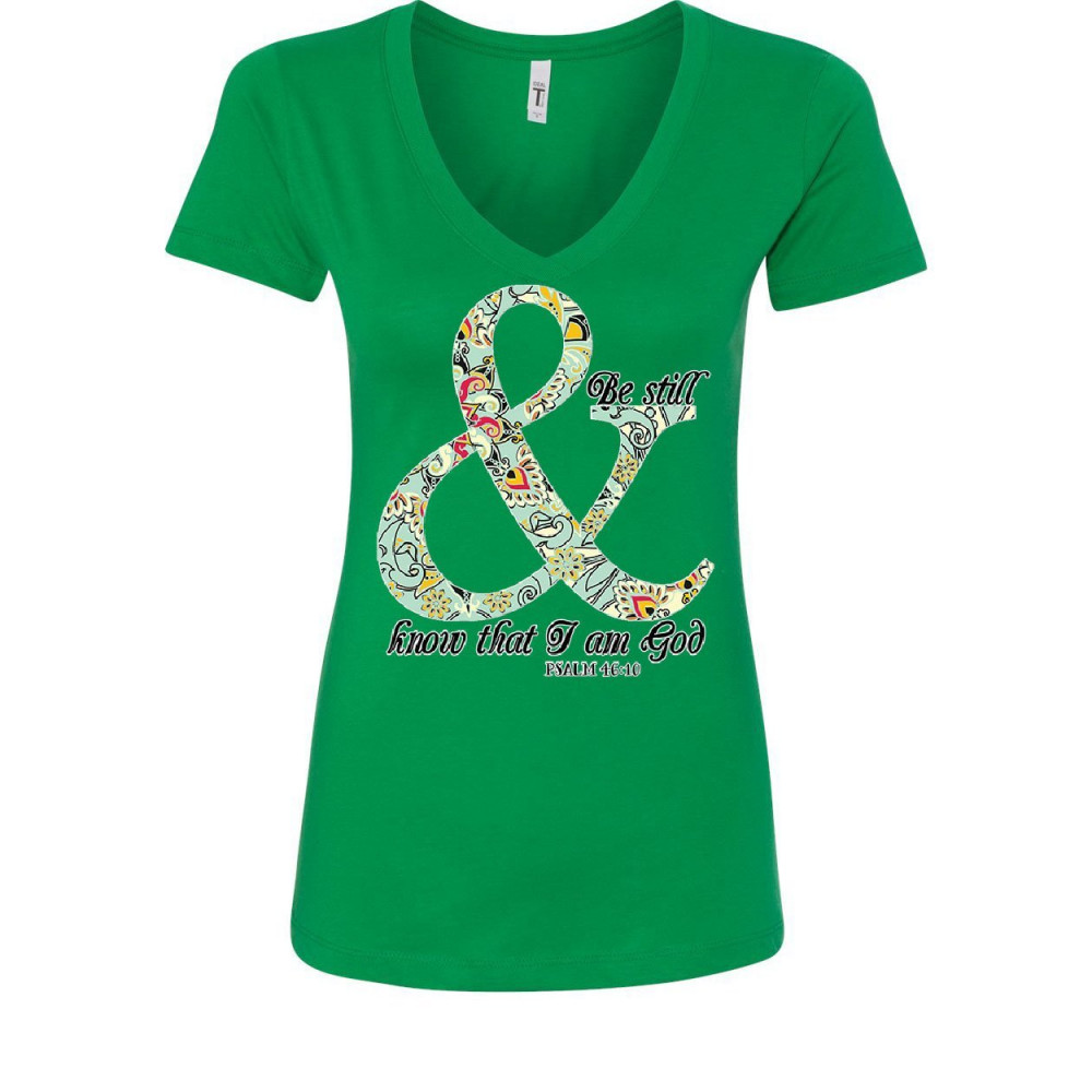 BE STILL & KNOW THAT I AM GOD women's v-neck t-shirt religion bible psalm 46:10 green