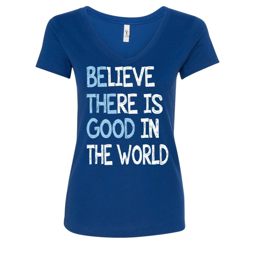 BE THE GOOD women's v-neck t-shirt believe there is good in the world inspire royal blue