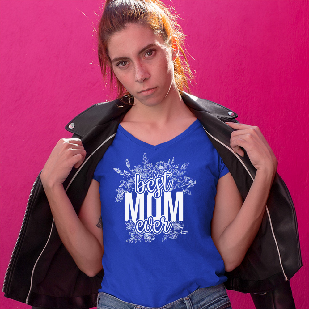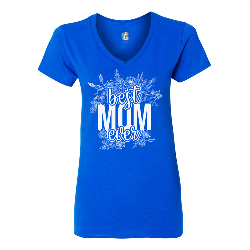 BEST MOM EVER women's v-neck t-shirt blessed mama mother's day maternity tee royal blue