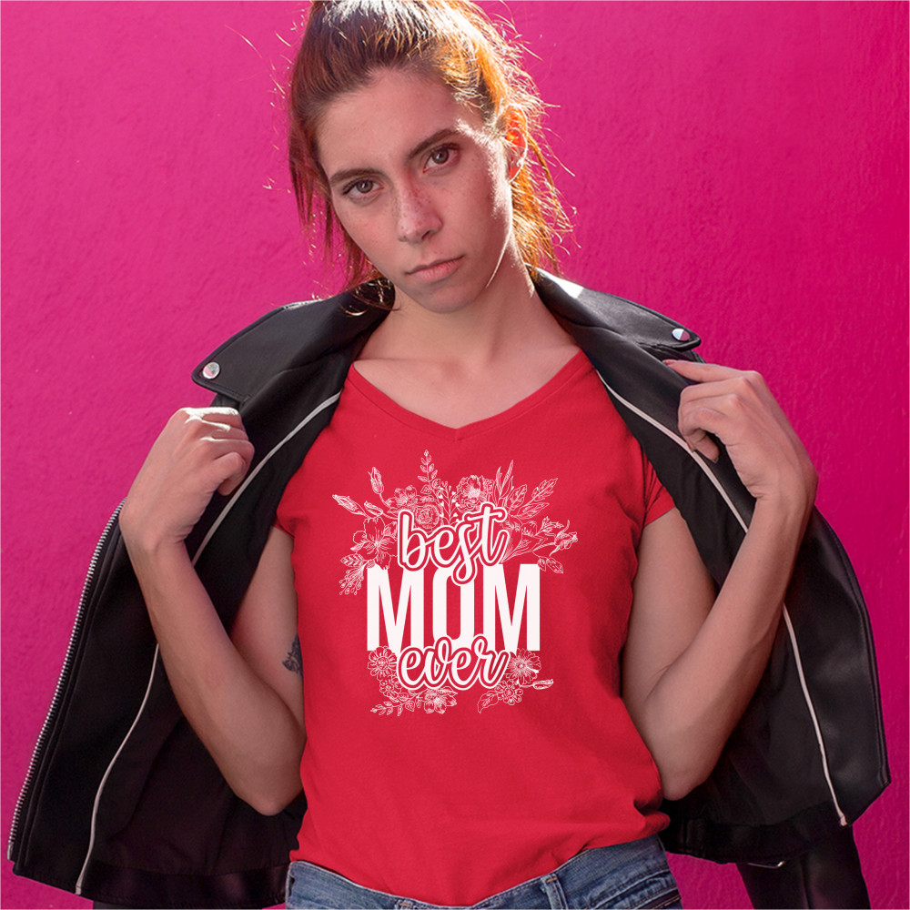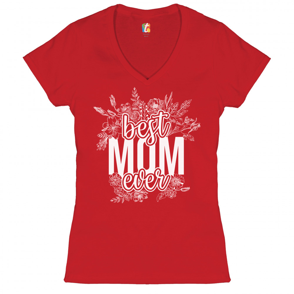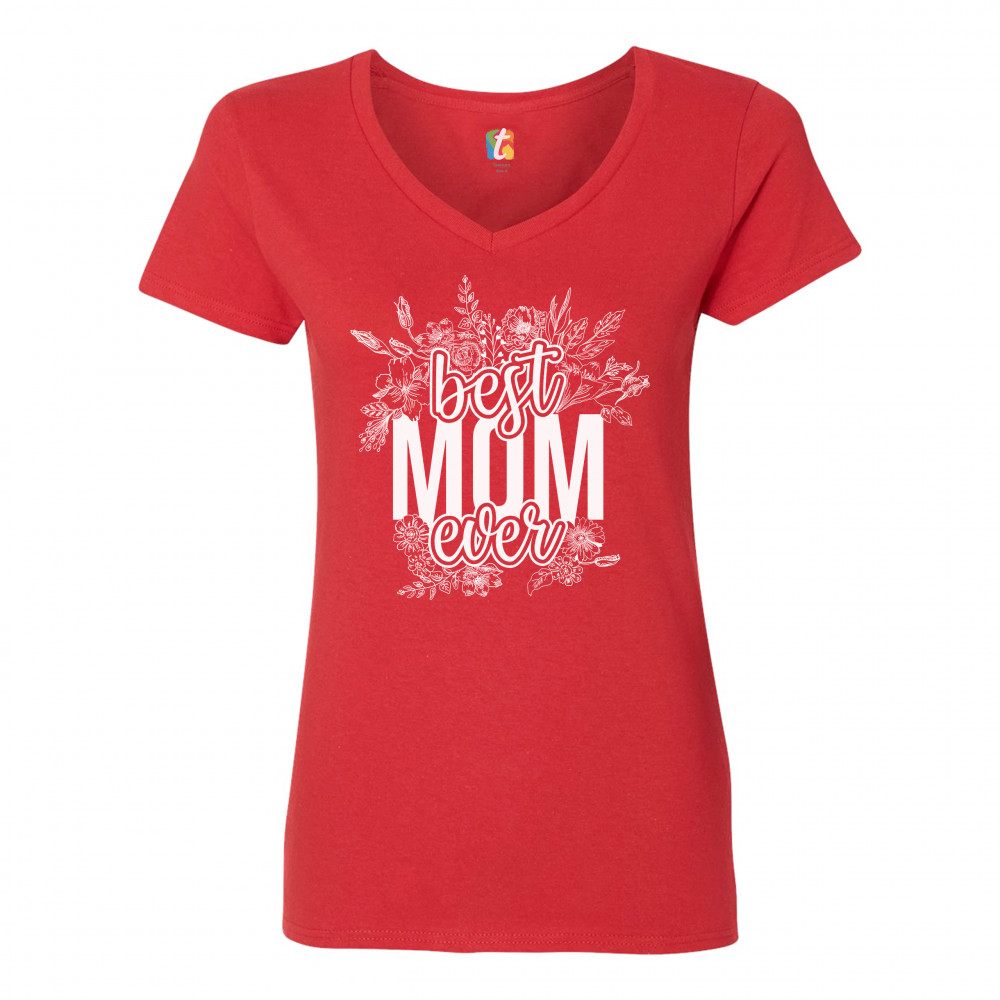 BEST MOM EVER women's v-neck t-shirt blessed mama mother's day maternity tee red