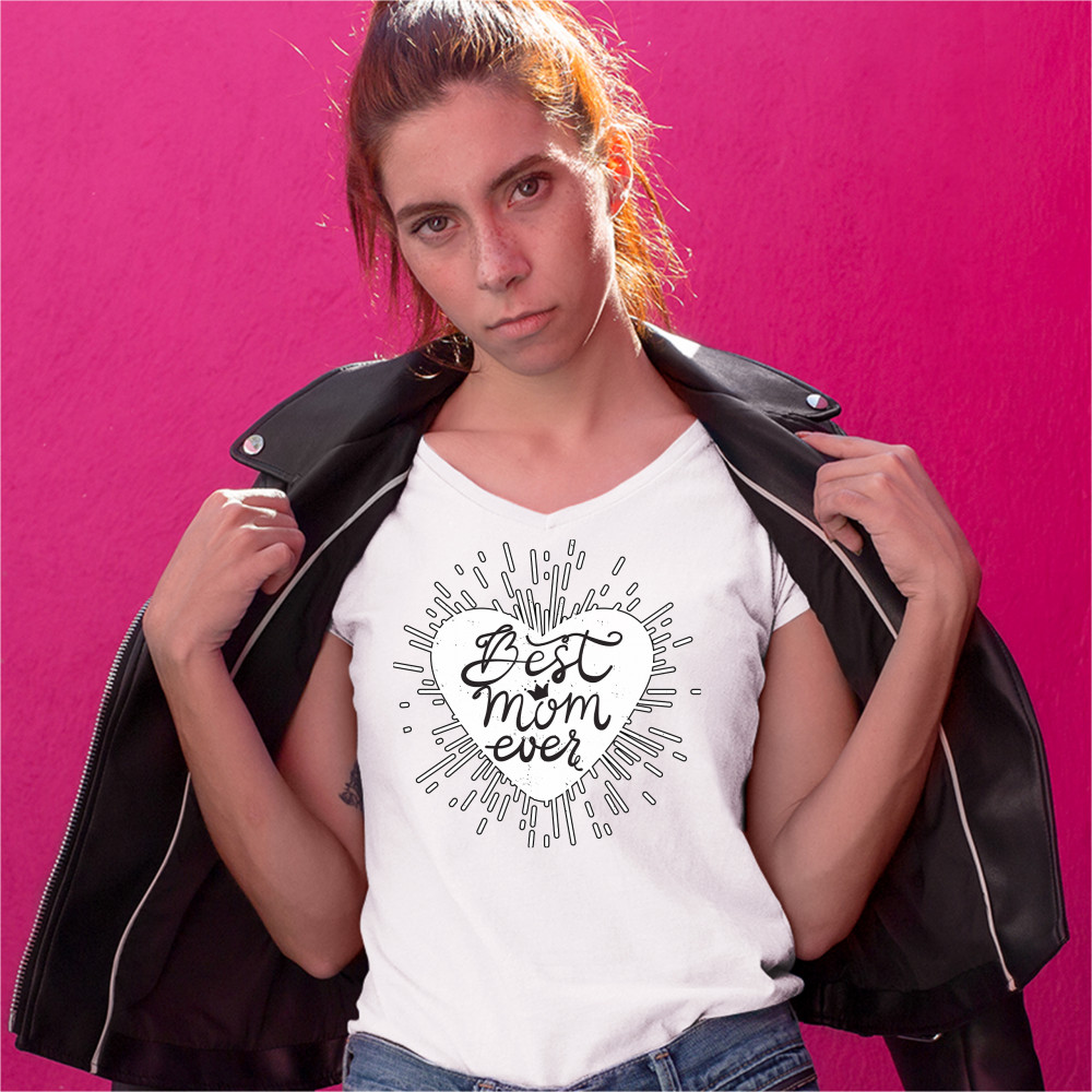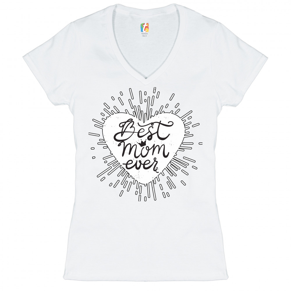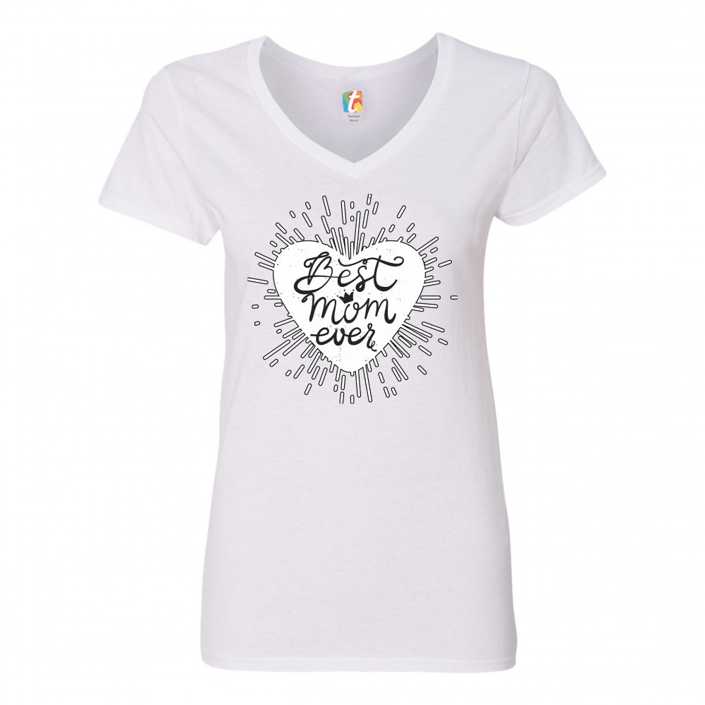 BEST MOM EVER women's v-neck t-shirt mother's day motherhood maternity tee white