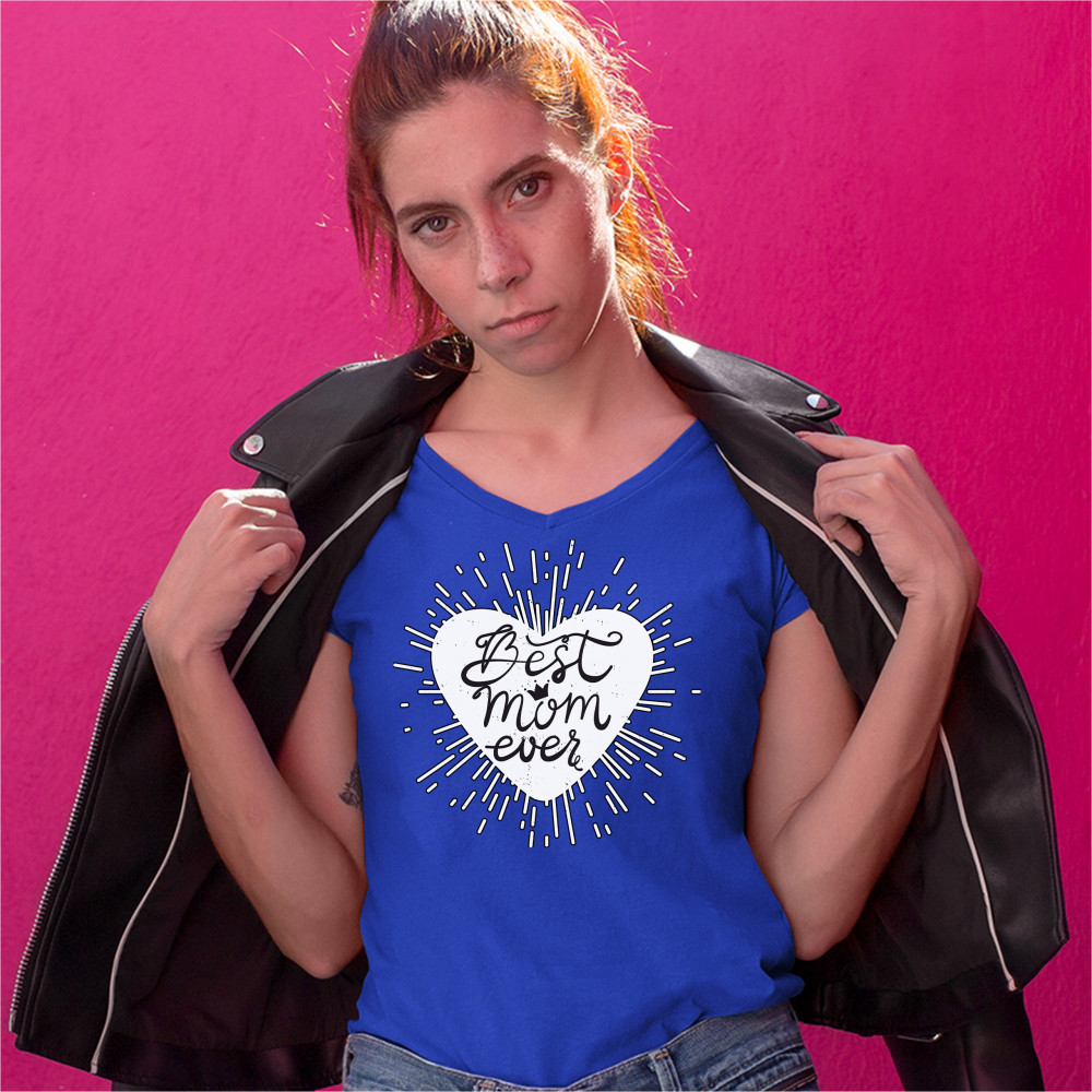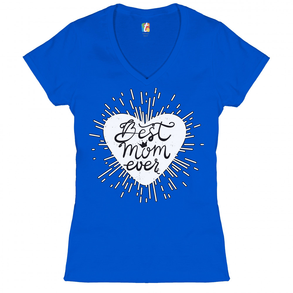 BEST MOM EVER women's v-neck t-shirt mother's day motherhood maternity tee royal blue