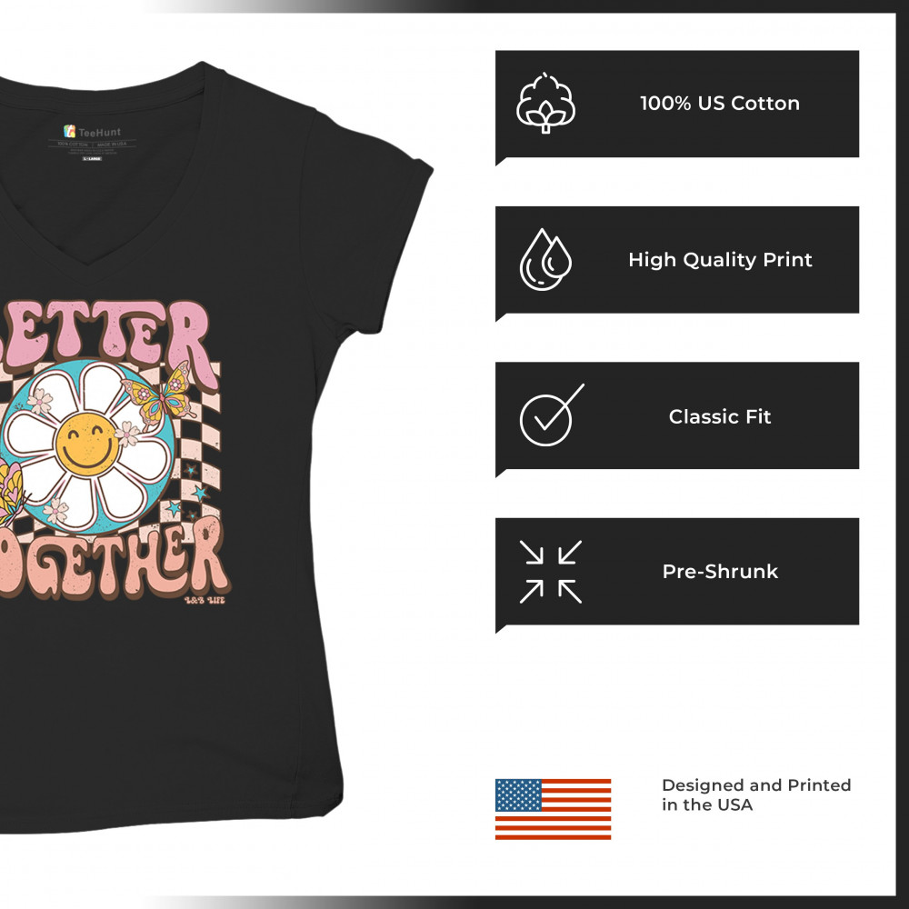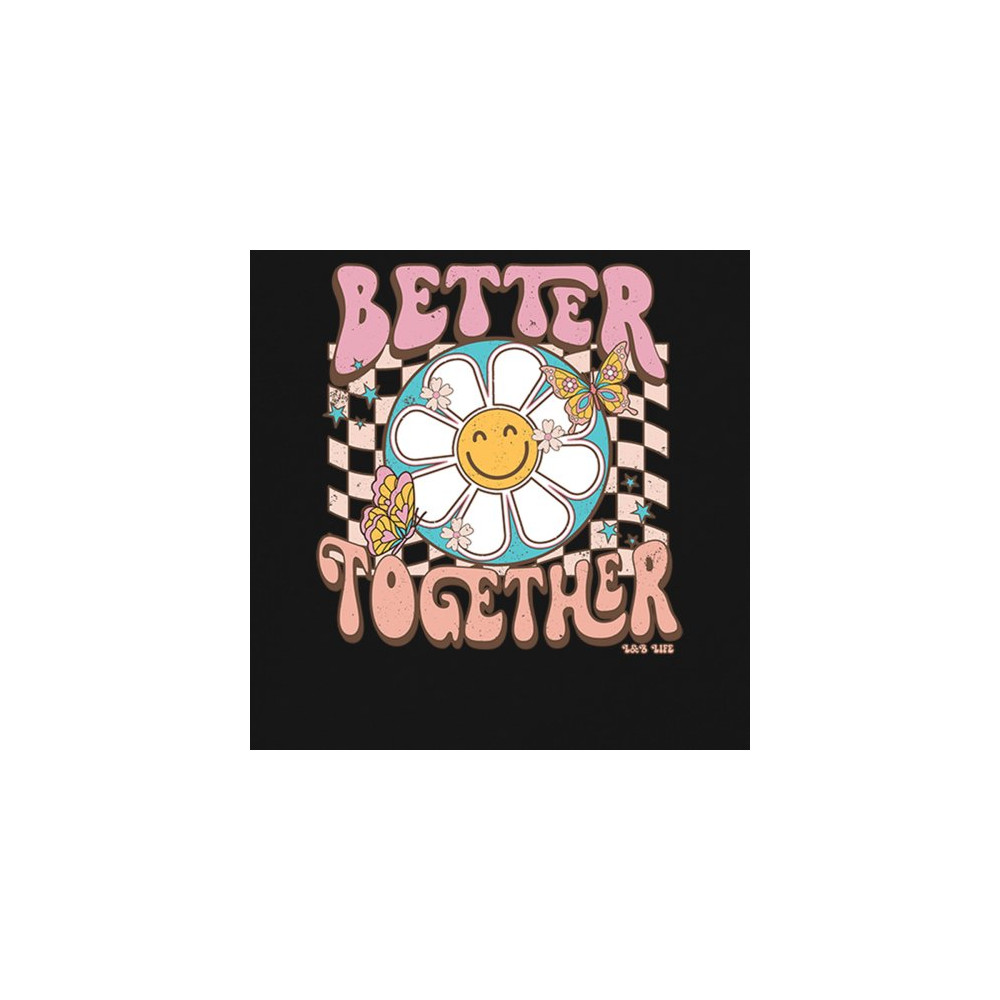 Join us in celebrating the simple joys with our "Better Together" design, where happiness blooms and friendships flutter like butterflies. This artwork is a sweet embrace of unity, crafted to bring smiles and a touch of retro charm to your life. It’s a delightful addition to any collection, symbolizing the belief that life's moments are sweeter shared. Adorn your favorite space with a design that's as warm and welcoming as a sunny day.