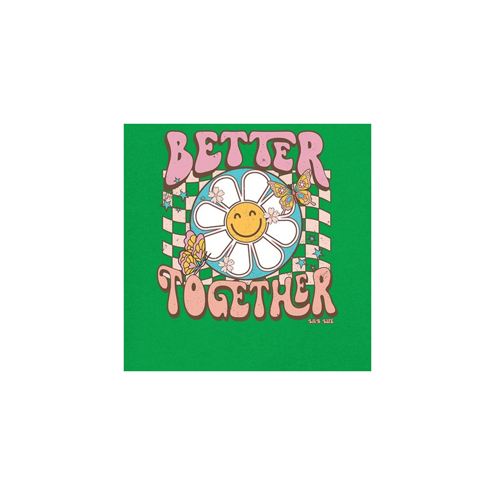 Join us in celebrating the simple joys with our "Better Together" design, where happiness blooms and friendships flutter like butterflies. This artwork is a sweet embrace of unity, crafted to bring smiles and a touch of retro charm to your life. It’s a delightful addition to any collection, symbolizing the belief that life's moments are sweeter shared. Adorn your favorite space with a design that's as warm and welcoming as a sunny day.