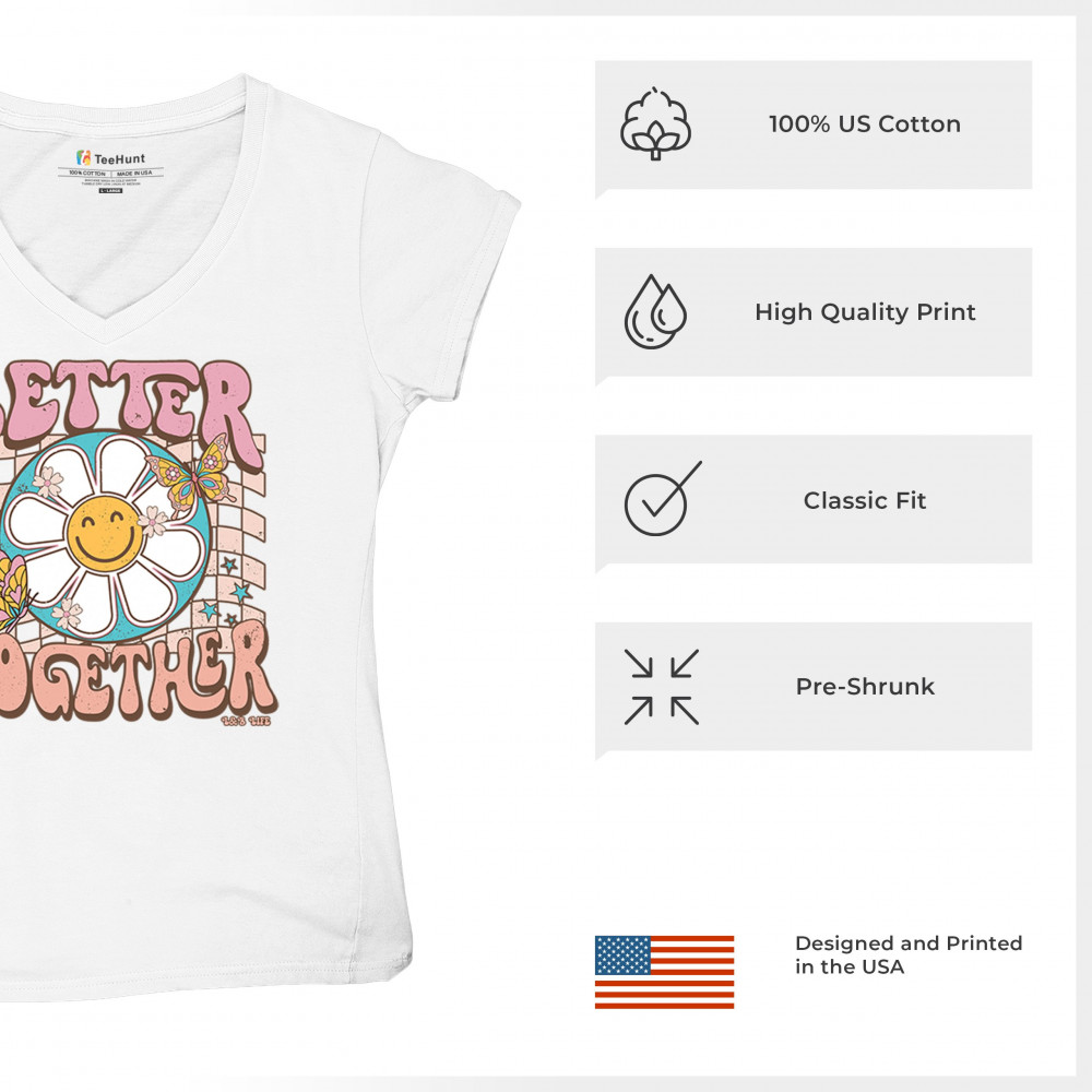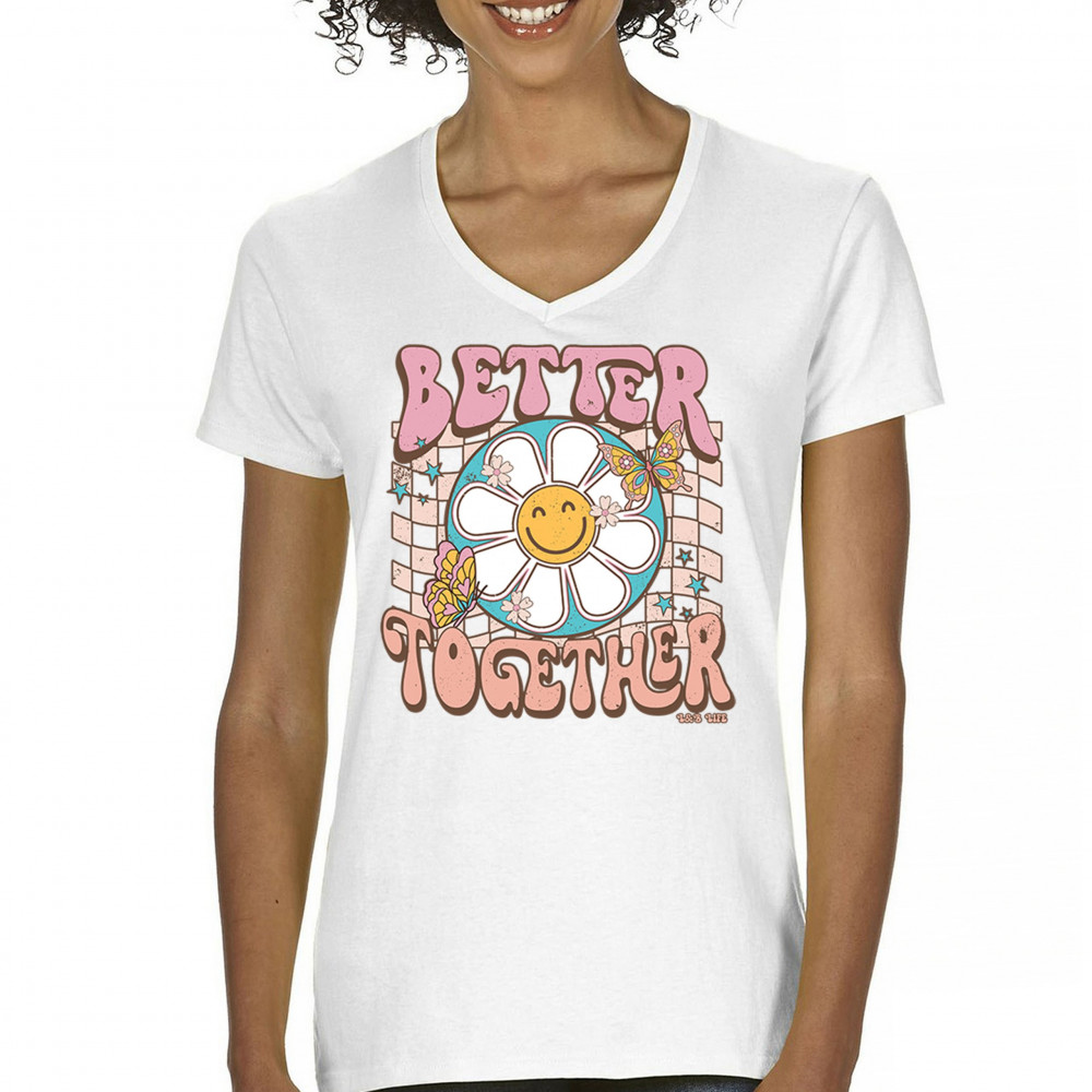 Join us in celebrating the simple joys with our "Better Together" design, where happiness blooms and friendships flutter like butterflies. This artwork is a sweet embrace of unity, crafted to bring smiles and a touch of retro charm to your life. It’s a delightful addition to any collection, symbolizing the belief that life's moments are sweeter shared. Adorn your favorite space with a design that's as warm and welcoming as a sunny day.