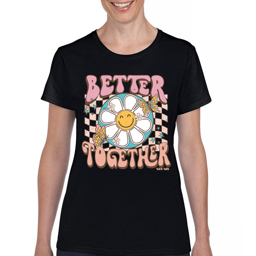Join us in celebrating the simple joys with our "Better Together" design, where happiness blooms and friendships flutter like butterflies. This artwork is a sweet embrace of unity, crafted to bring smiles and a touch of retro charm to your life. It’s a delightful addition to any collection, symbolizing the belief that life's moments are sweeter shared. Adorn your favorite space with a design that's as warm and welcoming as a sunny day.