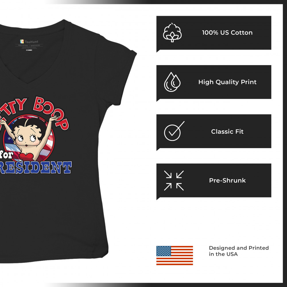 Show your playful side with the Betty Boop for President shirt! Perfect for cartoon lovers and fans of unique, humorous designs. Ideal gift for all occasions.
