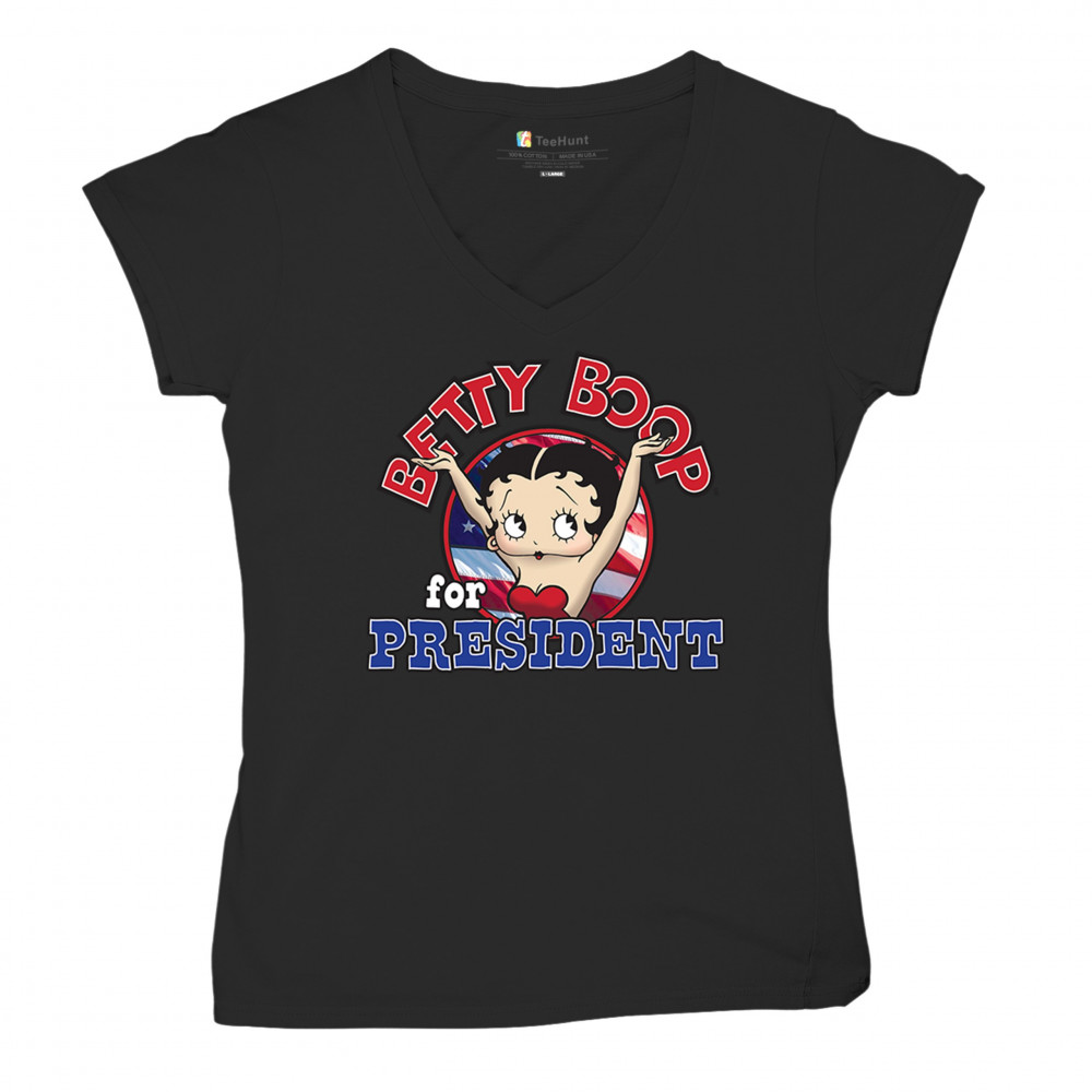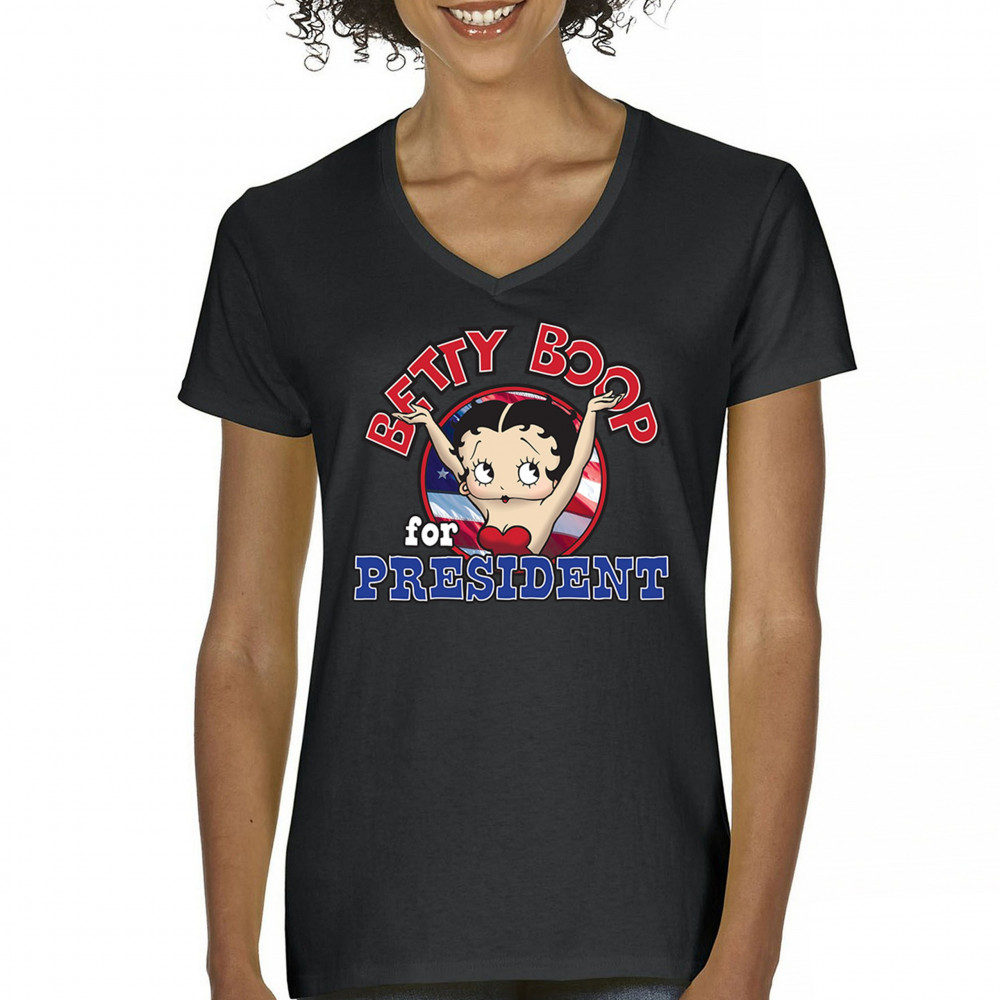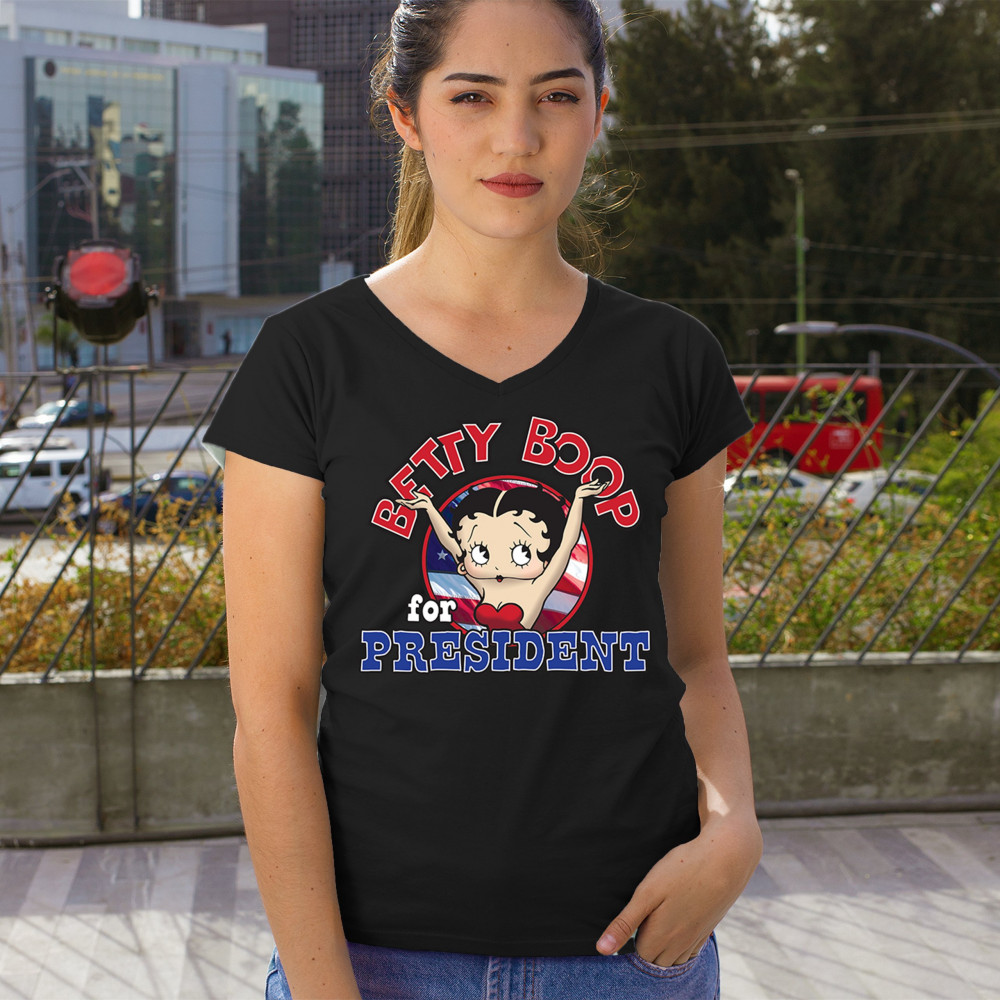 BETTY BOOP FOR PRESIDENT 2024 women's v-neck t-shirt fun humor pop culture tee black