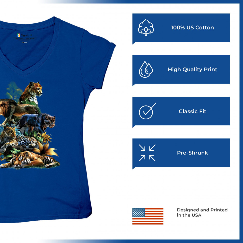 Bold big cat design with lion, tiger, leopard, cheetah, jaguar, and panther. A vivid tribute to wild nature, pride, and animal power.