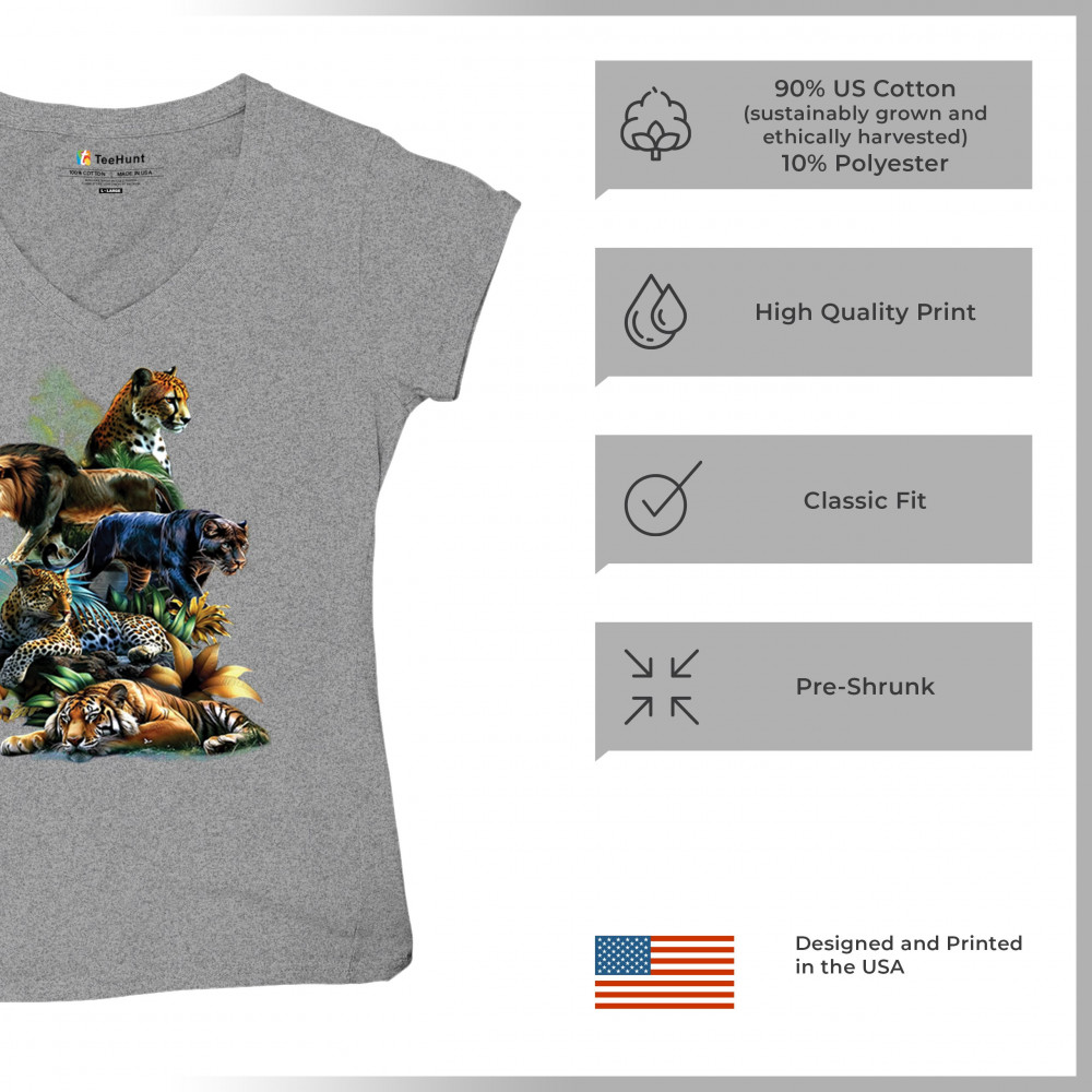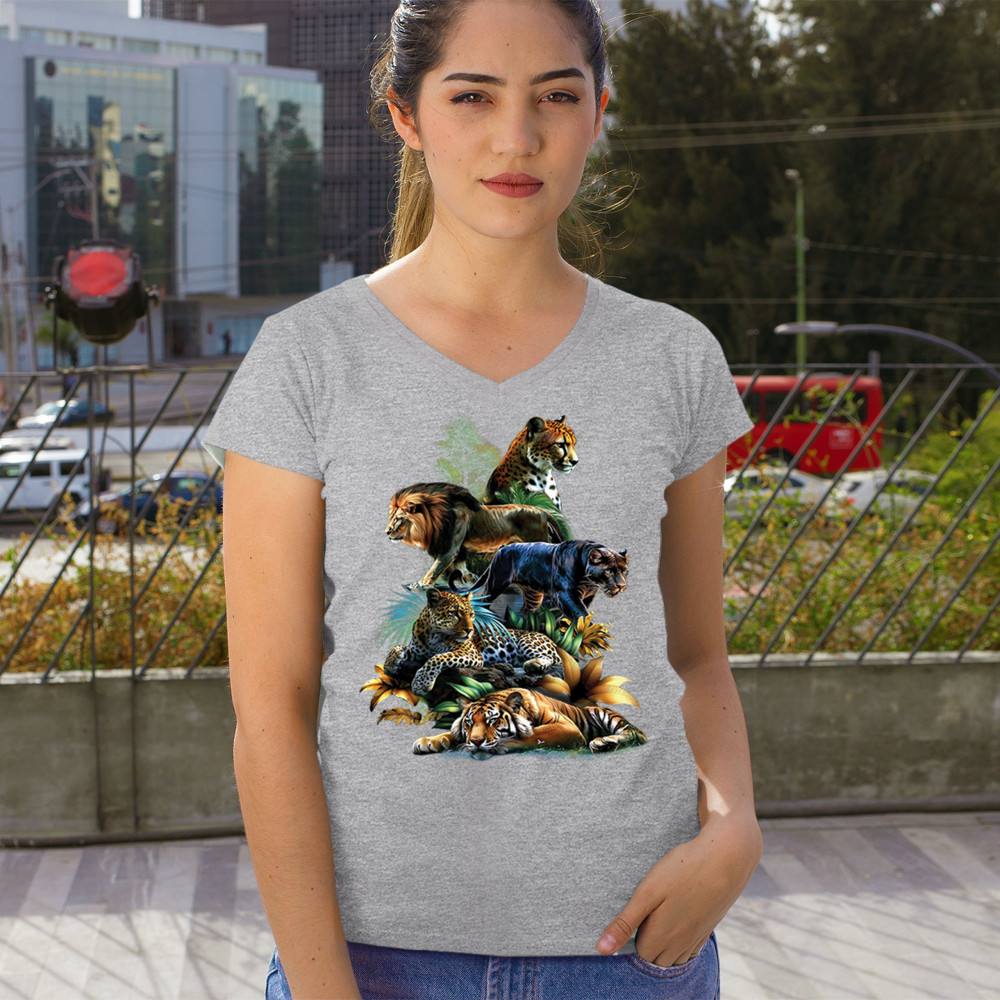 Bold big cat design with lion, tiger, leopard, cheetah, jaguar, and panther. A vivid tribute to wild nature, pride, and animal power.