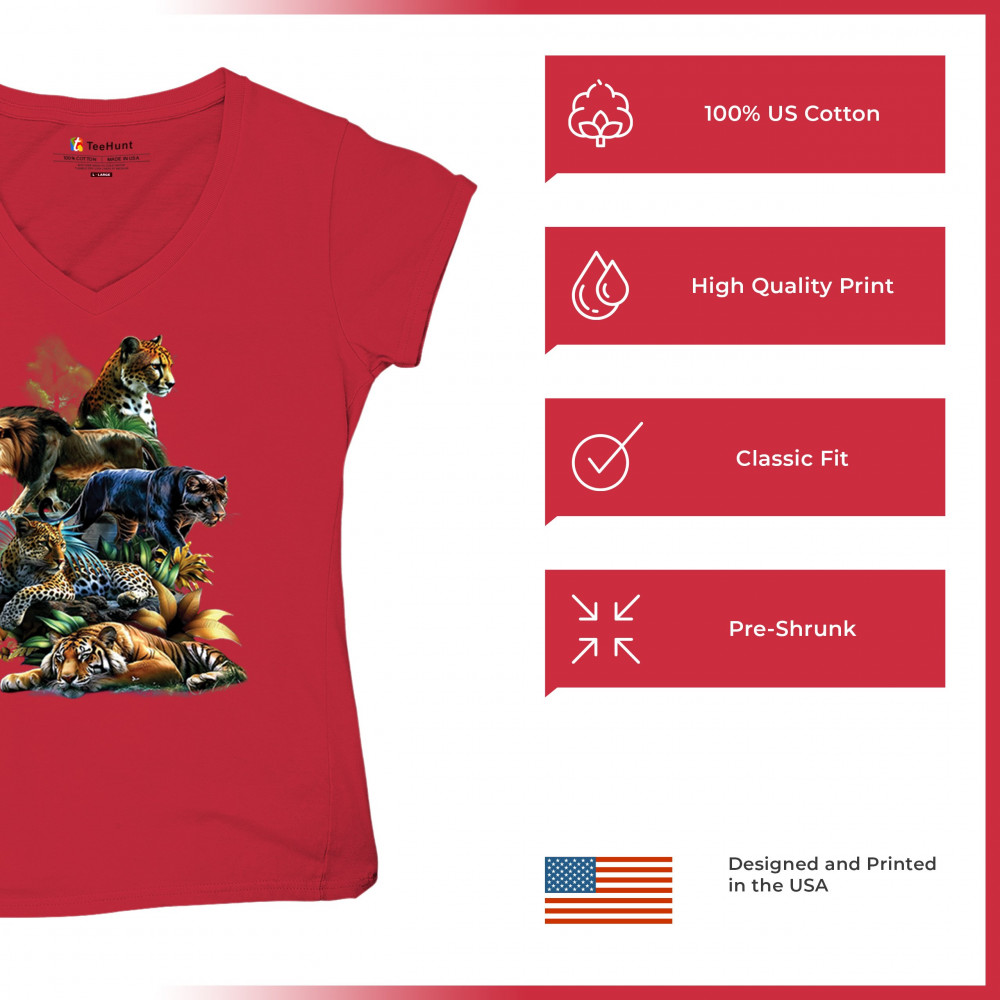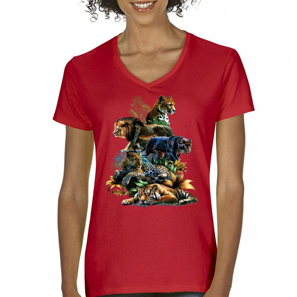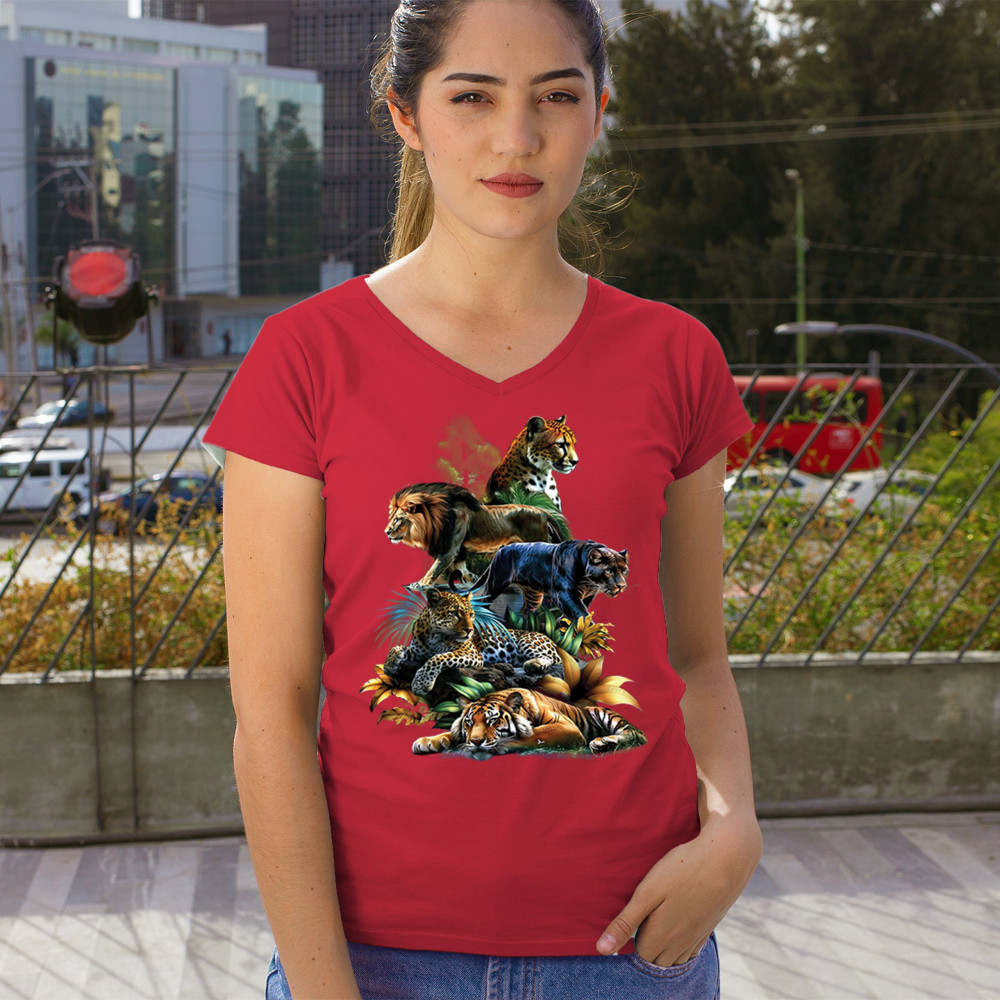 Bold big cat design with lion, tiger, leopard, cheetah, jaguar, and panther. A vivid tribute to wild nature, pride, and animal power.
