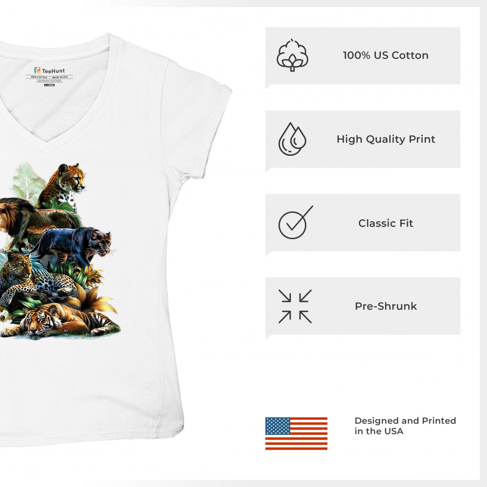 Bold big cat design with lion, tiger, leopard, cheetah, jaguar, and panther. A vivid tribute to wild nature, pride, and animal power.