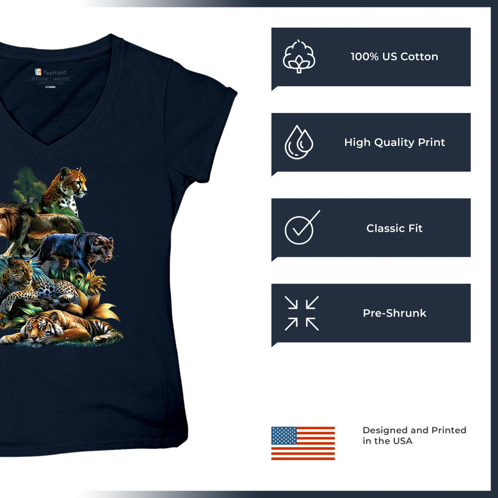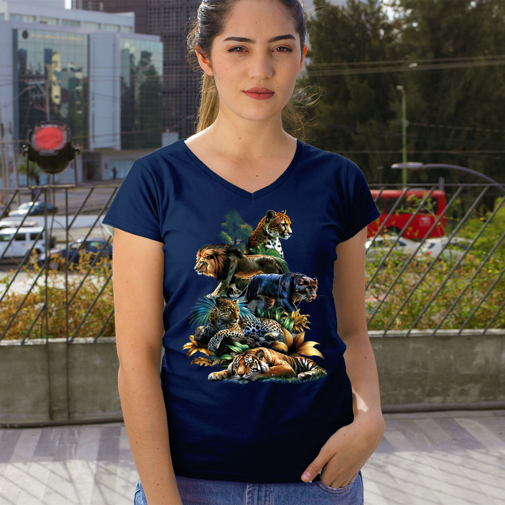 Bold big cat design with lion, tiger, leopard, cheetah, jaguar, and panther. A vivid tribute to wild nature, pride, and animal power.