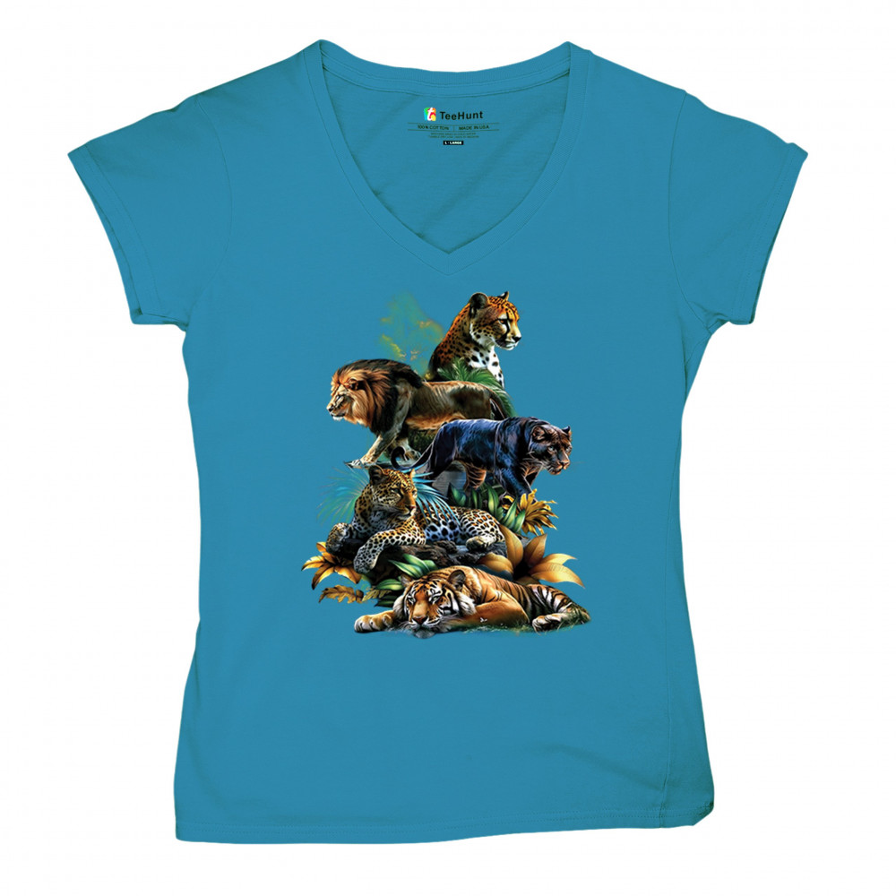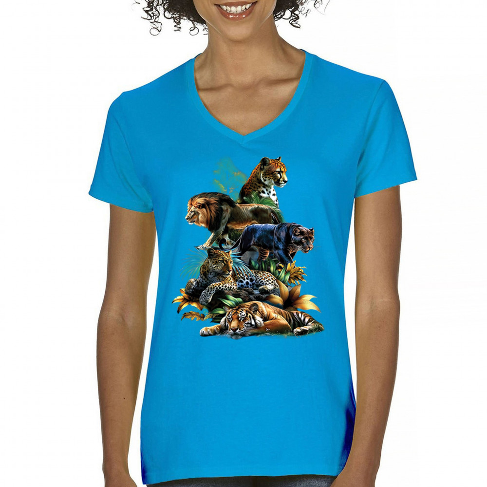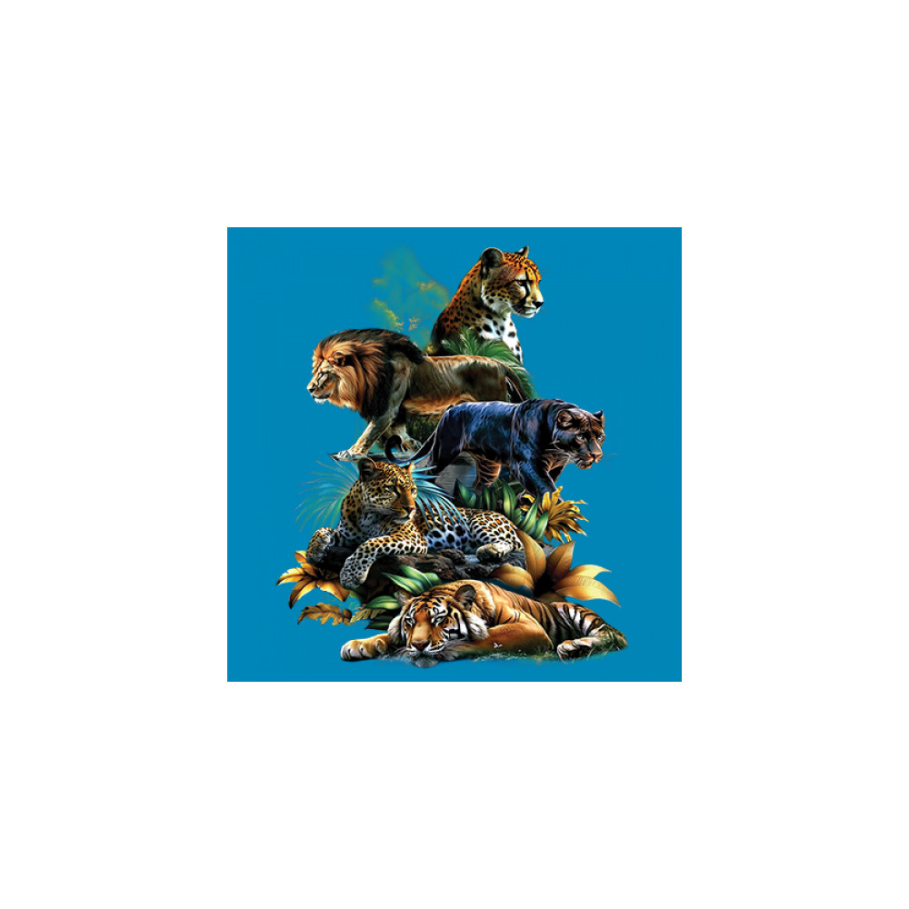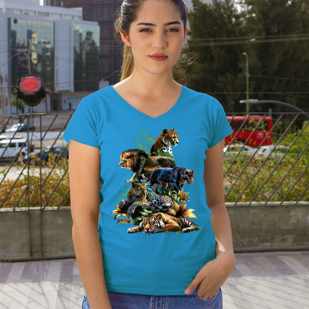 Bold big cat design with lion, tiger, leopard, cheetah, jaguar, and panther. A vivid tribute to wild nature, pride, and animal power.