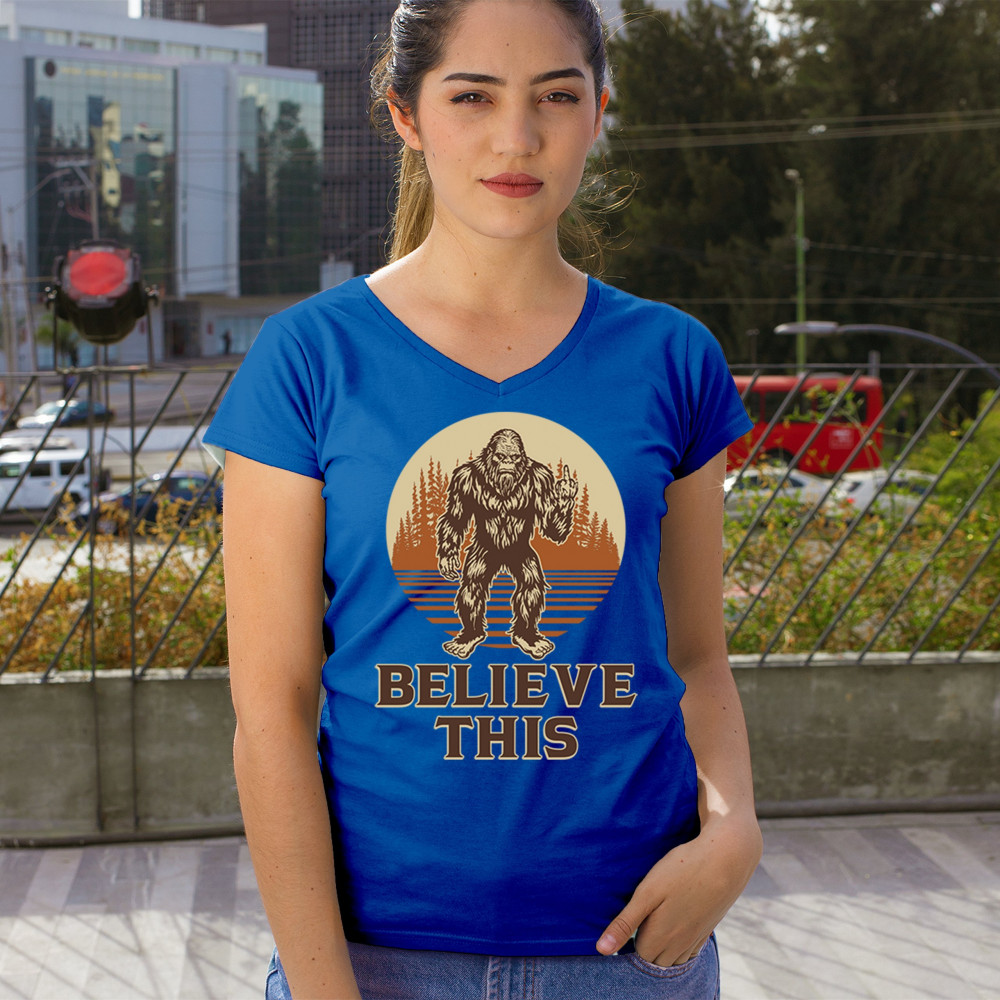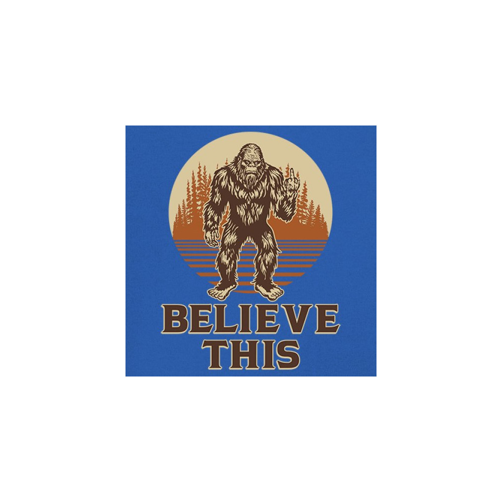 The Believe This Bigfoot design blends cryptid folklore with blunt attitude—because sometimes you just don’t care who believes. Featuring Bigfoot flipping the bird against a rustic tree line, it’s perfect for campers, rebels, and fans of sarcastic forest humor. Ideal for hikes, festivals, and off-grid living.