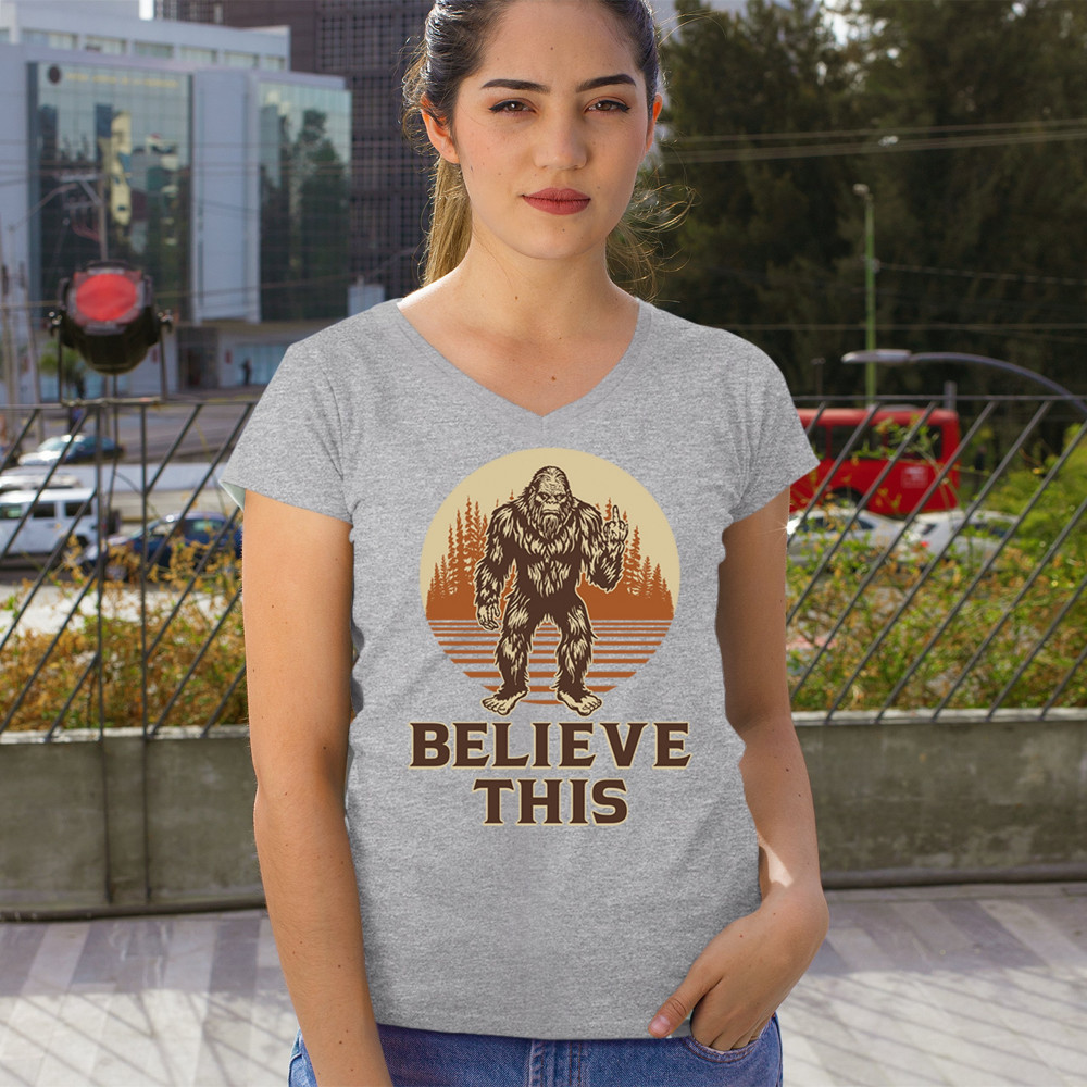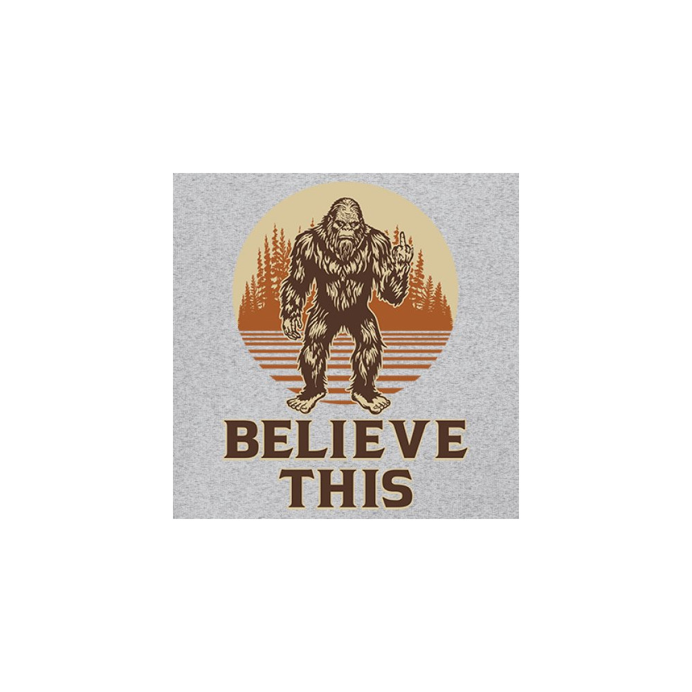 The Believe This Bigfoot design blends cryptid folklore with blunt attitude—because sometimes you just don’t care who believes. Featuring Bigfoot flipping the bird against a rustic tree line, it’s perfect for campers, rebels, and fans of sarcastic forest humor. Ideal for hikes, festivals, and off-grid living.