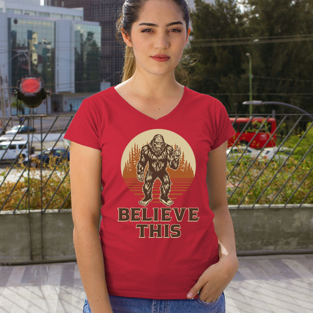 The Believe This Bigfoot design blends cryptid folklore with blunt attitude—because sometimes you just don’t care who believes. Featuring Bigfoot flipping the bird against a rustic tree line, it’s perfect for campers, rebels, and fans of sarcastic forest humor. Ideal for hikes, festivals, and off-grid living.