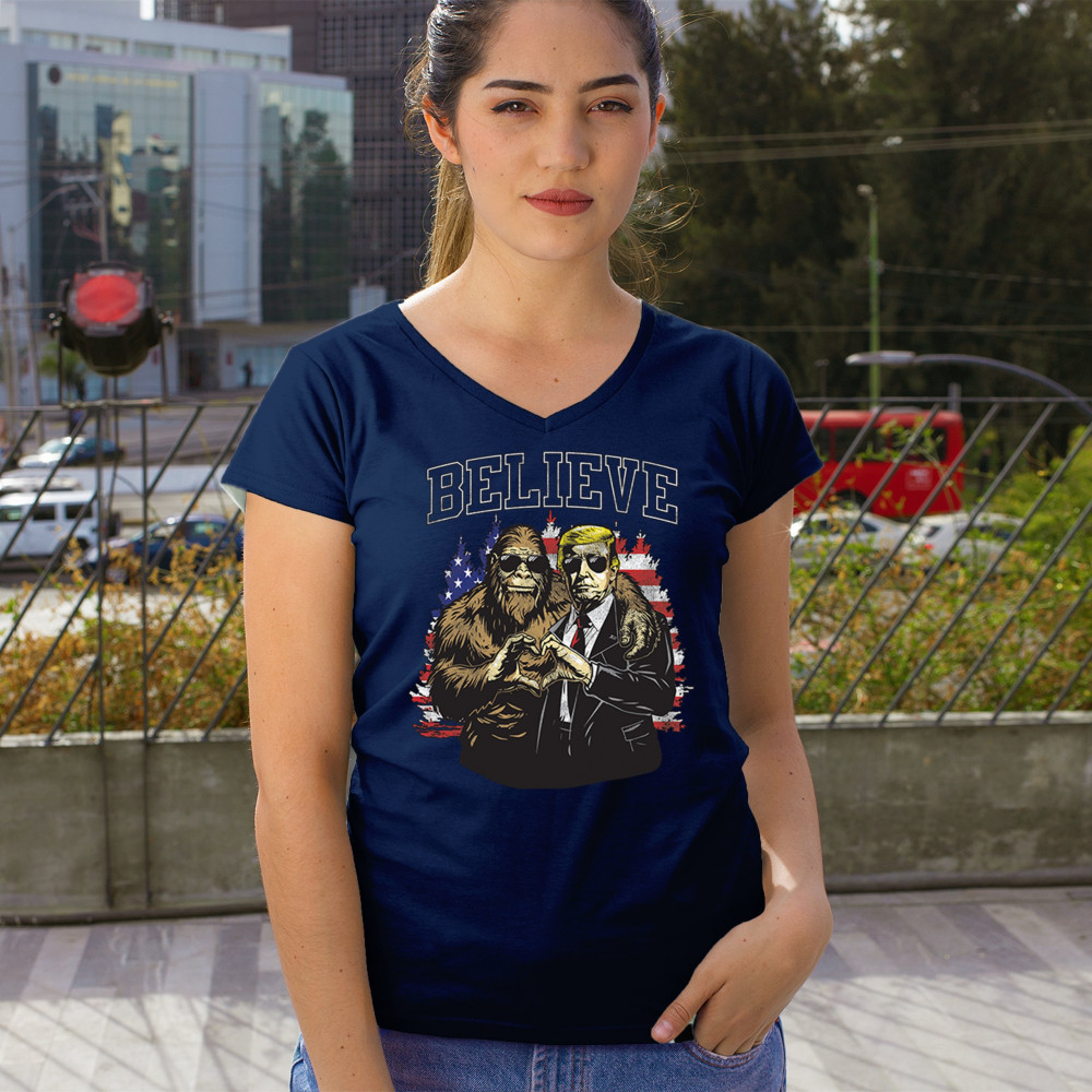 The "Believe" design combines patriotic pride and conservative values with a touch of fun. Featuring Donald J. Trump and a loyal Bigfoot against the American flag, this graphic is perfect for Trump supporters, Republicans, and believers in America First. Celebrate the Red Wave, the 47th President, and the unstoppable fight for victory. Ideal for anyone with unwavering belief in the people's mandate.