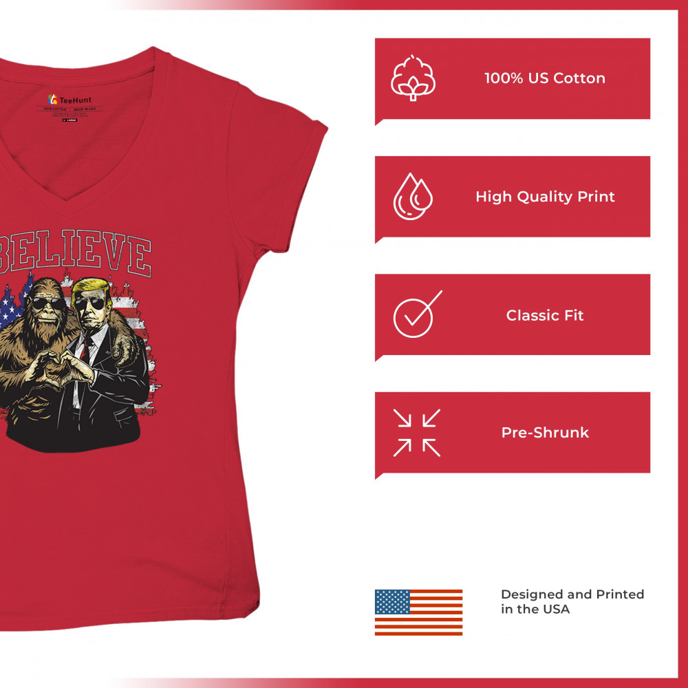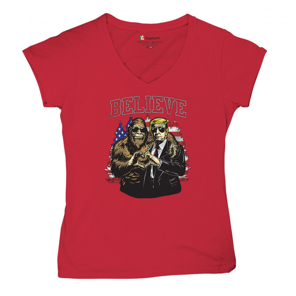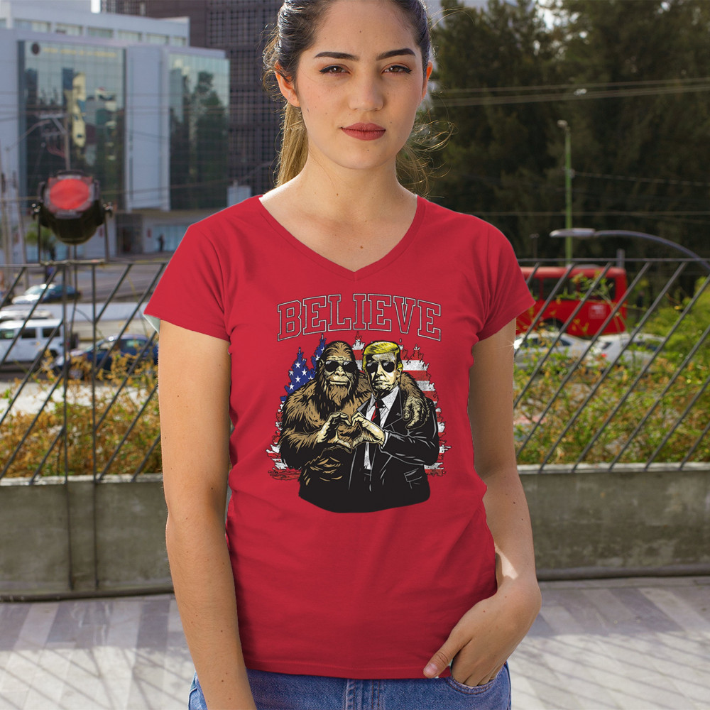 Show your belief with Trump and Bigfoot! Celebrate America First, the Red Wave, and conservative pride with this unique and patriotic design.