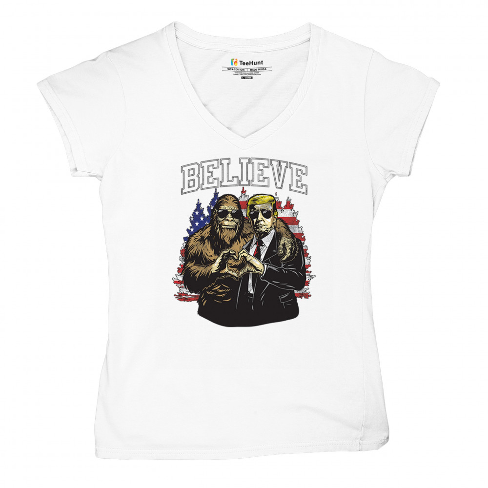 Show your belief with Trump and Bigfoot! Celebrate America First, the Red Wave, and conservative pride with this unique and patriotic design.
