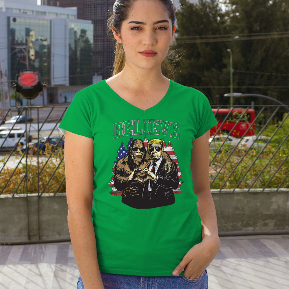Show your belief with Trump and Bigfoot! Celebrate America First, the Red Wave, and conservative pride with this unique and patriotic design.