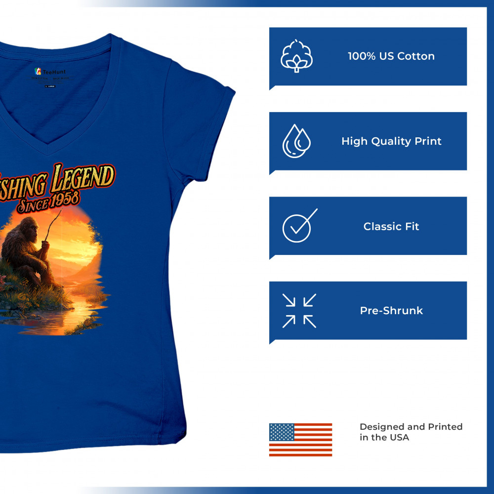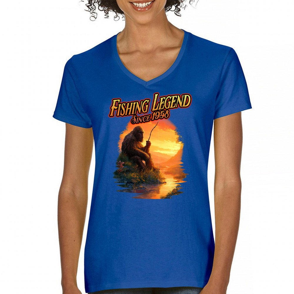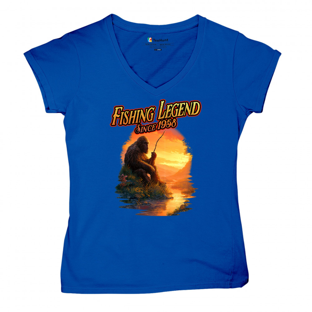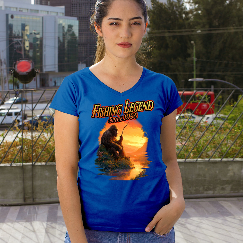 Bigfoot fishing legend design with Sasquatch lifestyle, retro vintage humor, funny wilderness shirt, Father’s Day gift, and campfire style.