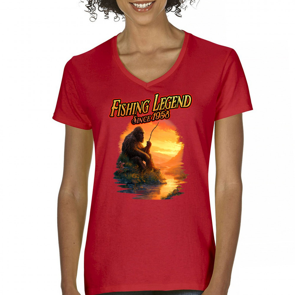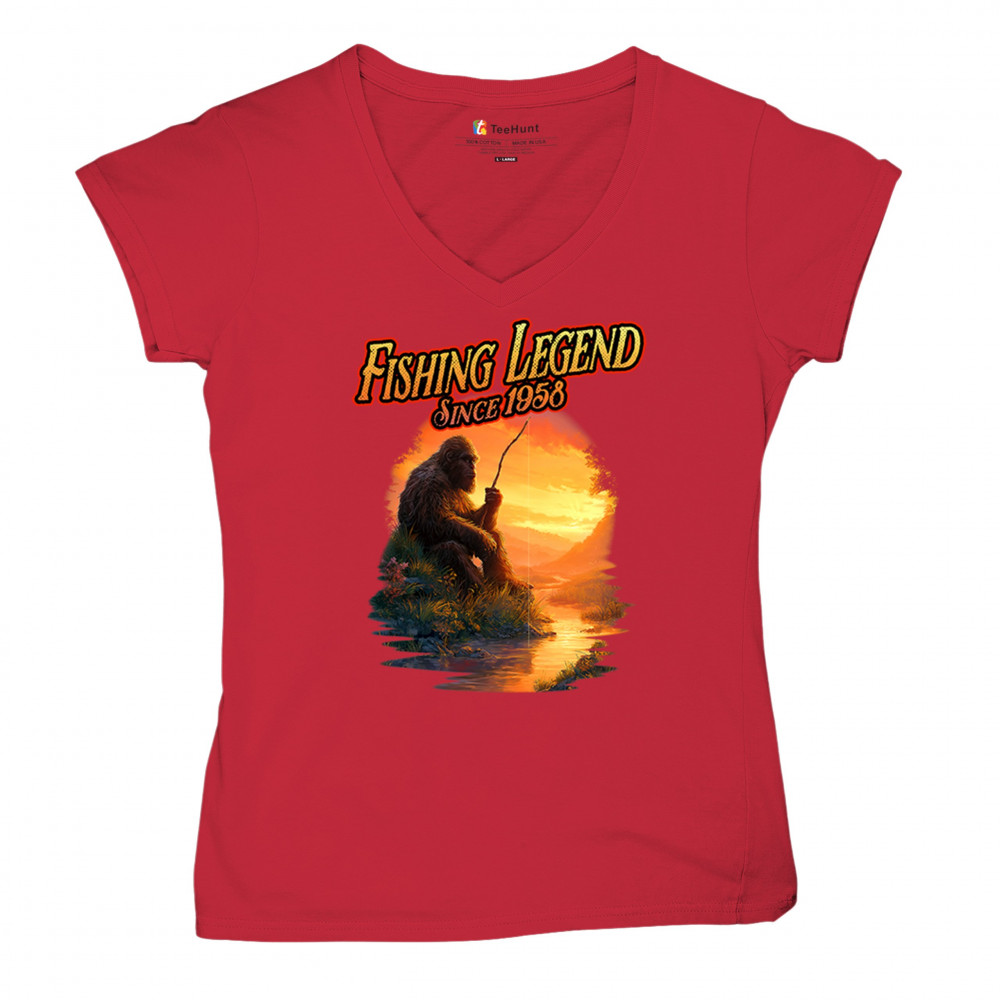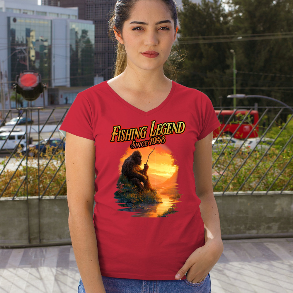 Bigfoot fishing legend design with Sasquatch lifestyle, retro vintage humor, funny wilderness shirt, Father’s Day gift, and campfire style.