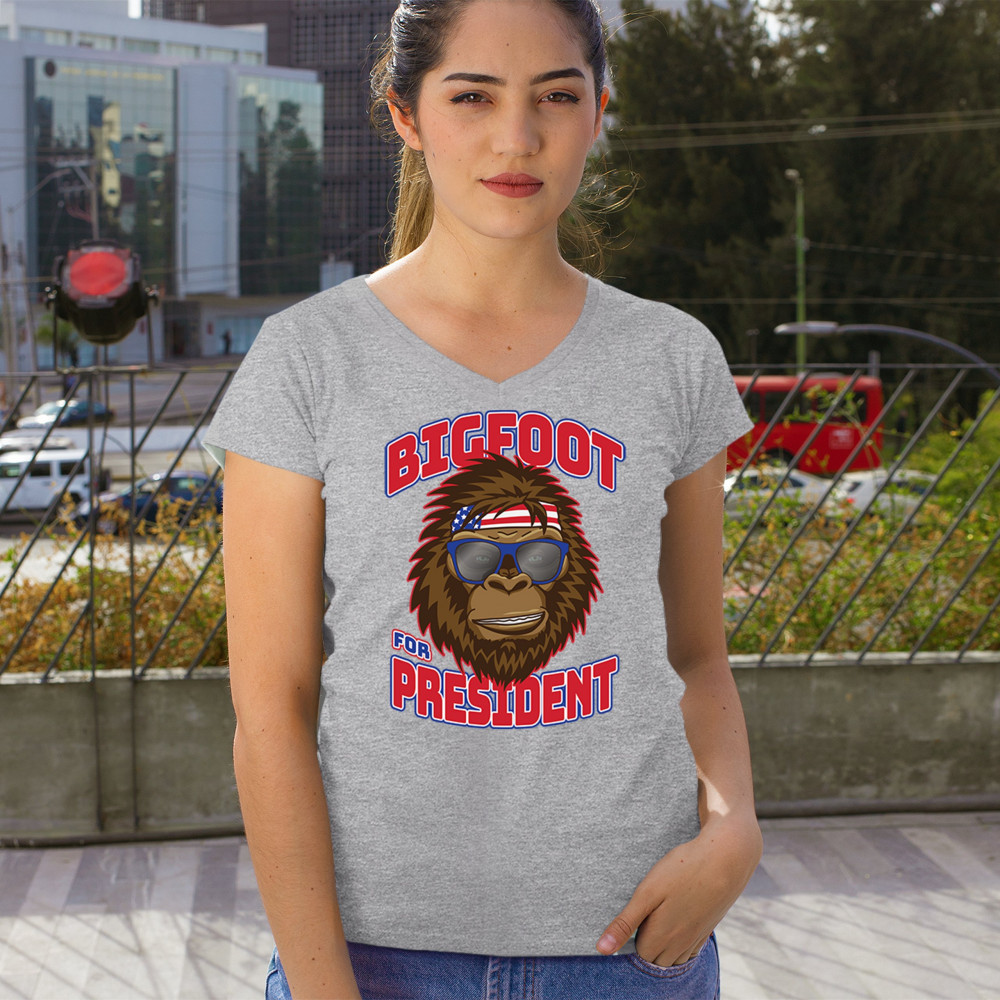 Show off your quirky style with the "Bigfoot for President" design. Perfect for casual wear and parties, featuring Bigfoot in sunglasses and a patriotic bandana.