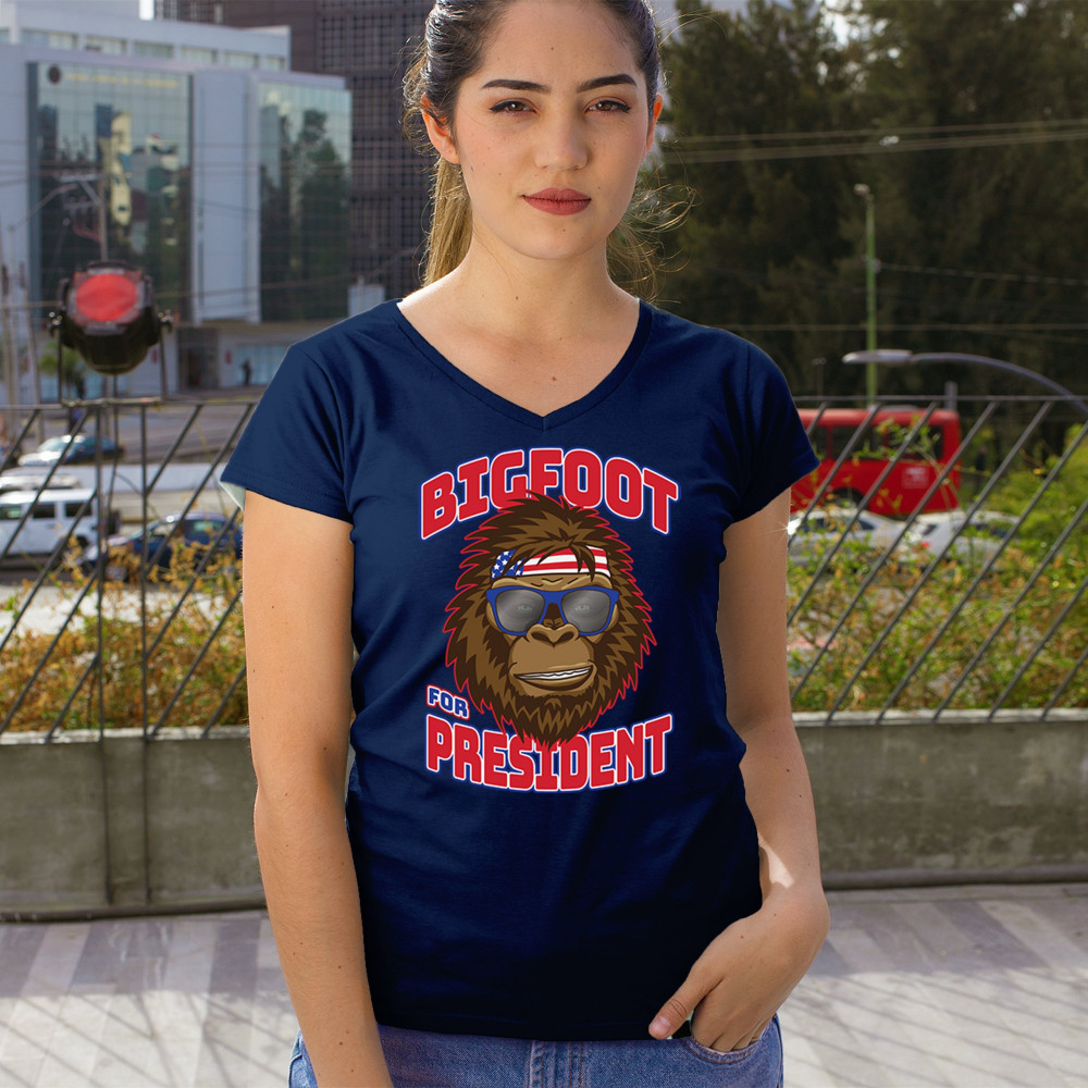 Show off your quirky style with the "Bigfoot for President" design. Perfect for casual wear and parties, featuring Bigfoot in sunglasses and a patriotic bandana.