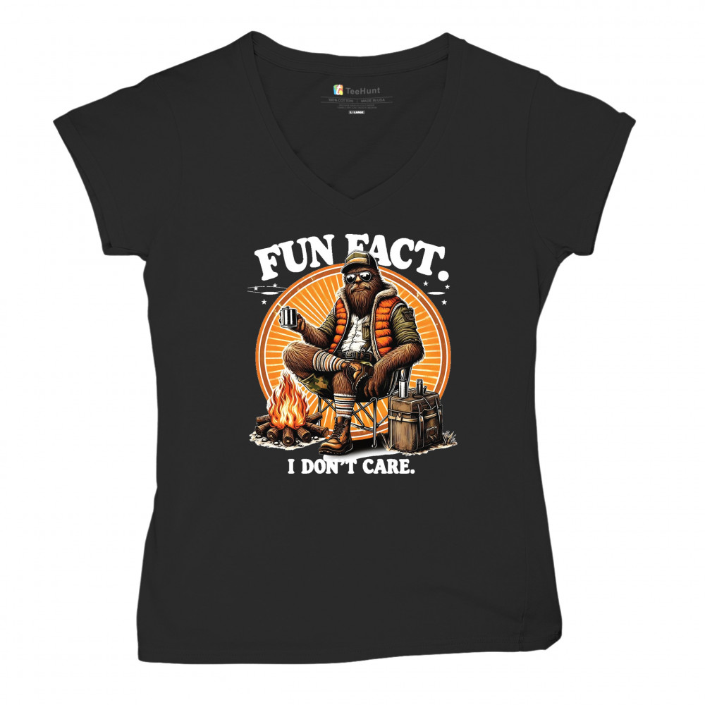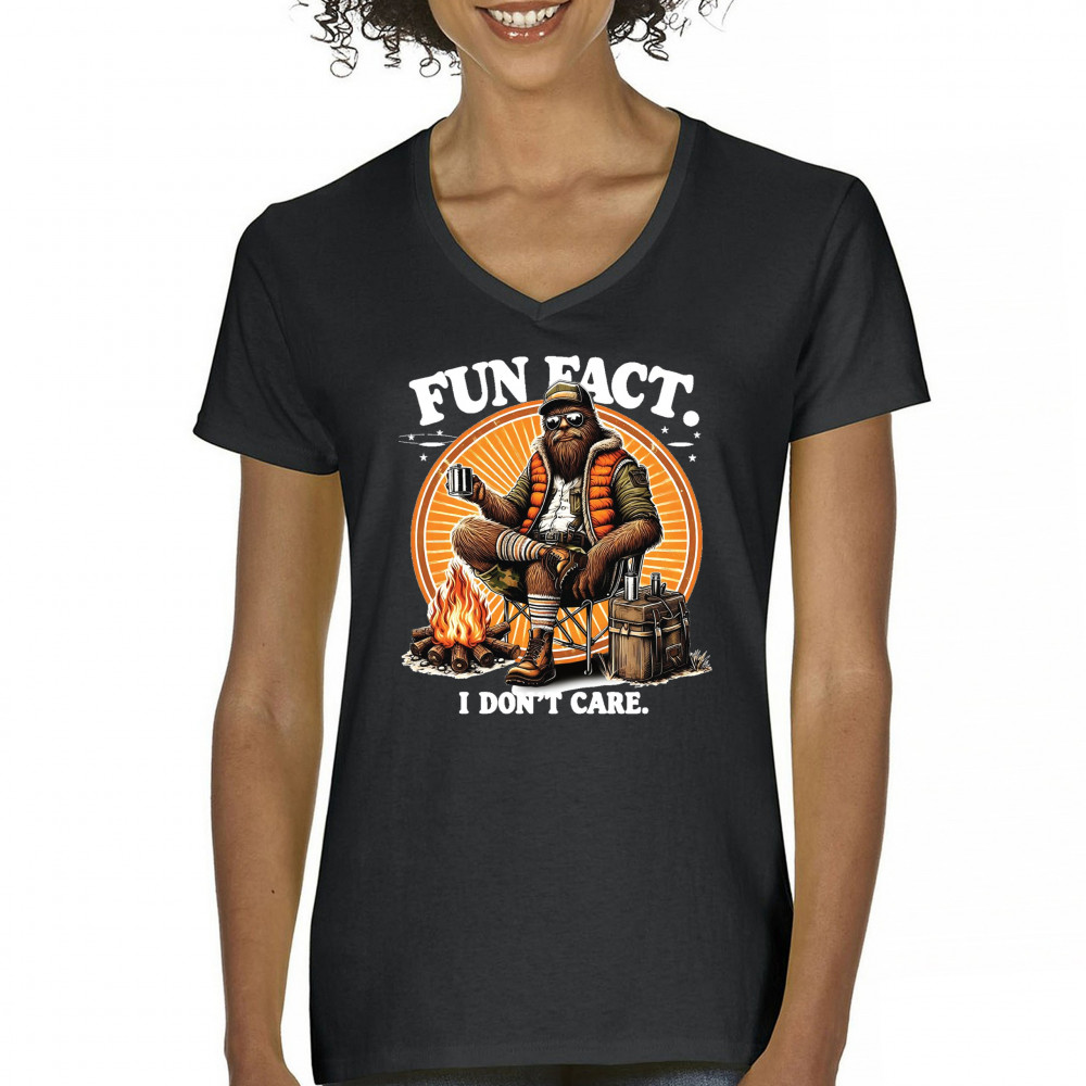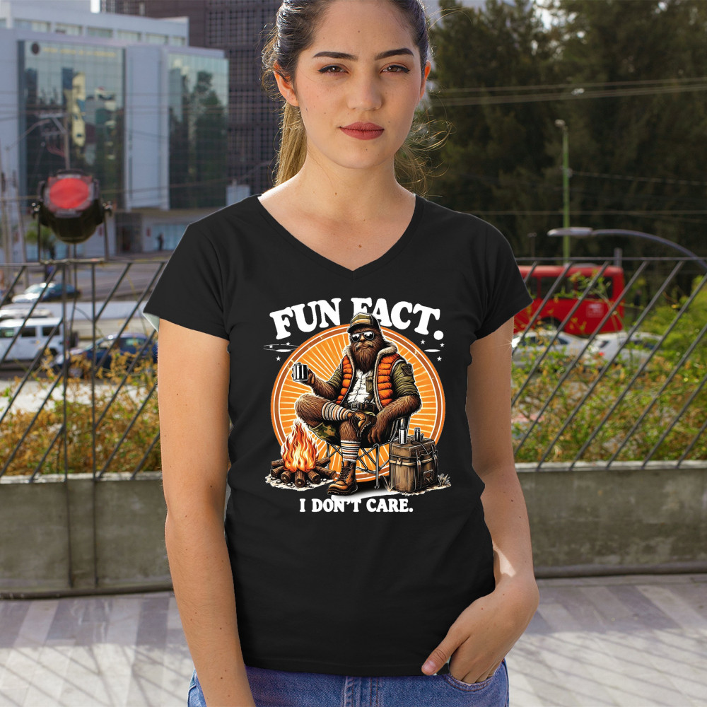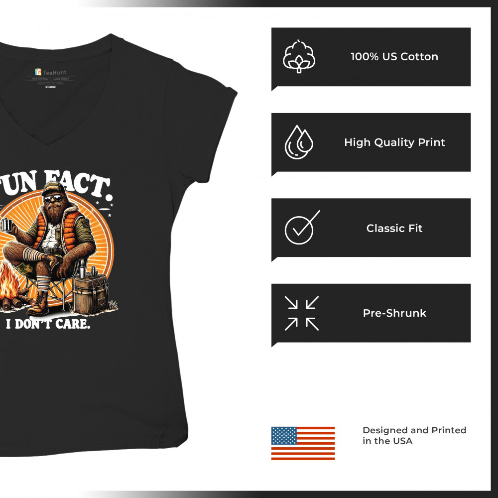 Funny Bigfoot Fun Fact design with cryptid humor, sarcastic outdoors shirt vibe, retro Sasquatch saying, USA pride, and camping adventure style.
