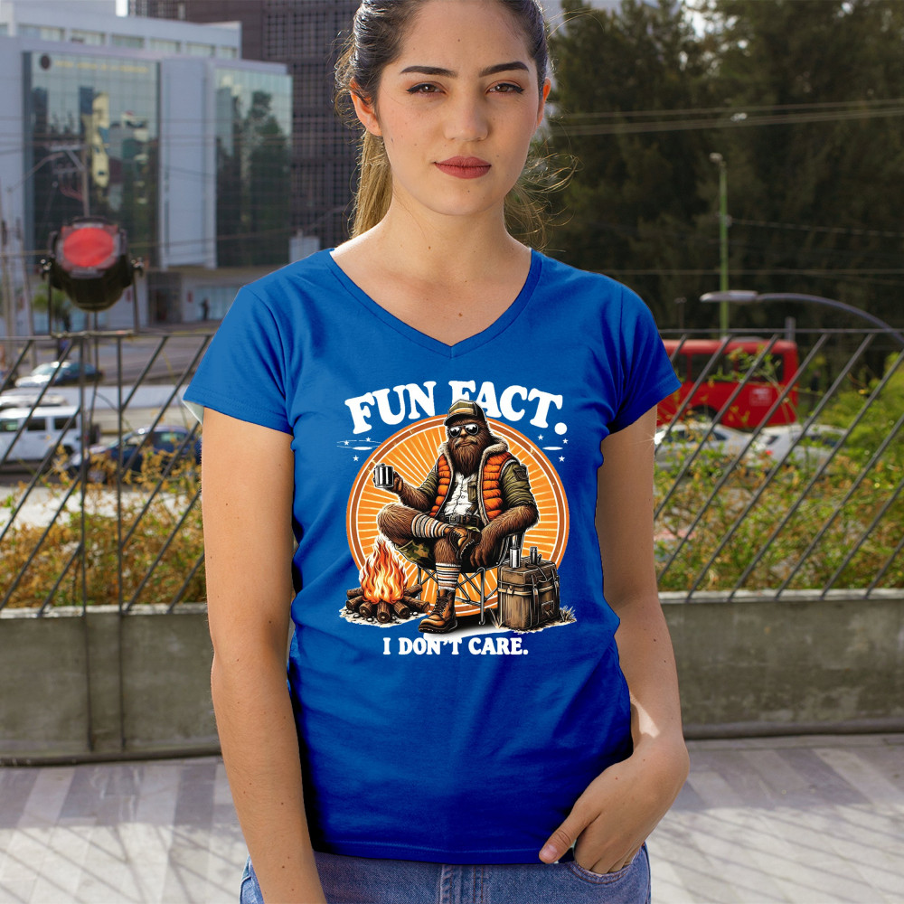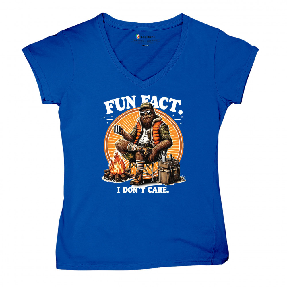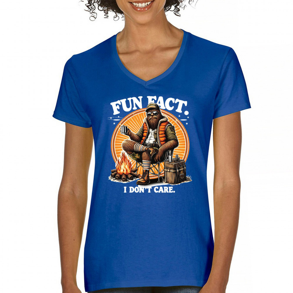 Funny Bigfoot Fun Fact design with cryptid humor, sarcastic outdoors shirt vibe, retro Sasquatch saying, USA pride, and camping adventure style.