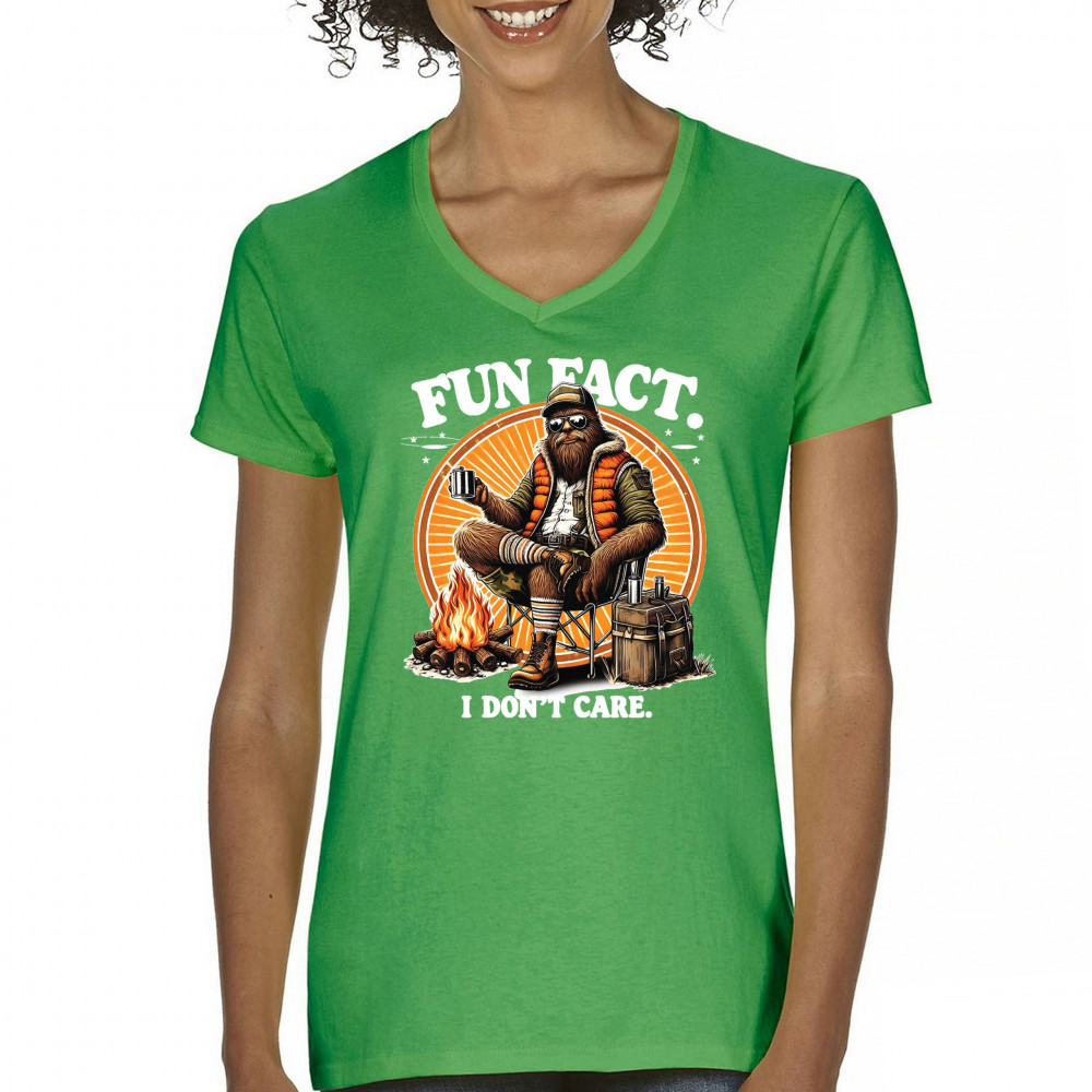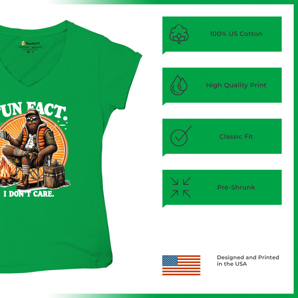Funny Bigfoot Fun Fact design with cryptid humor, sarcastic outdoors shirt vibe, retro Sasquatch saying, USA pride, and camping adventure style.