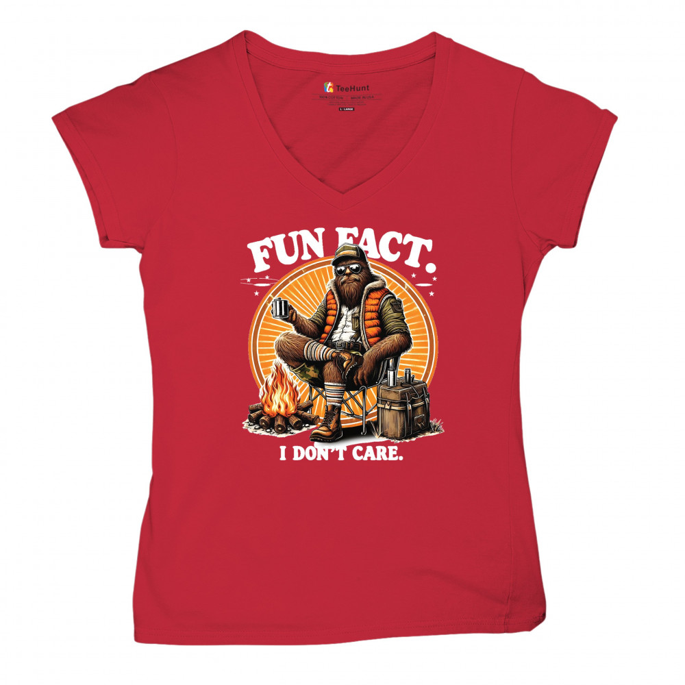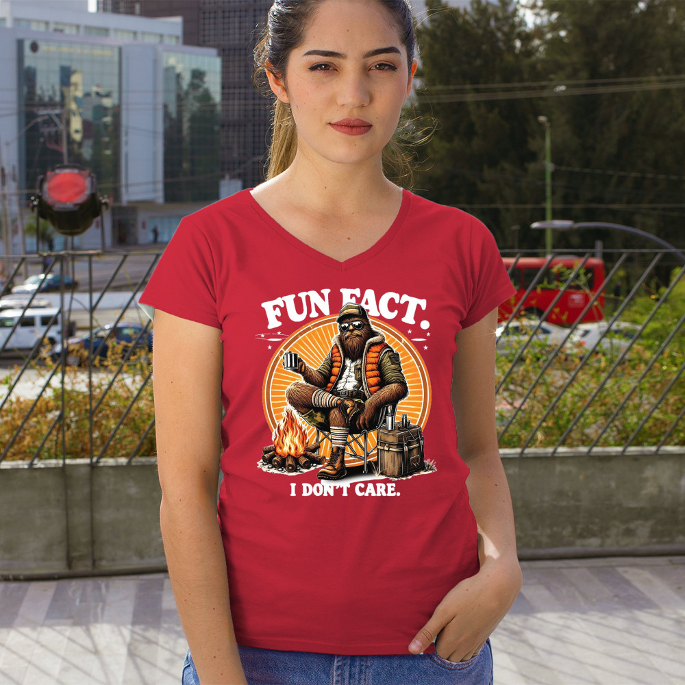 Funny Bigfoot Fun Fact design with cryptid humor, sarcastic outdoors shirt vibe, retro Sasquatch saying, USA pride, and camping adventure style.