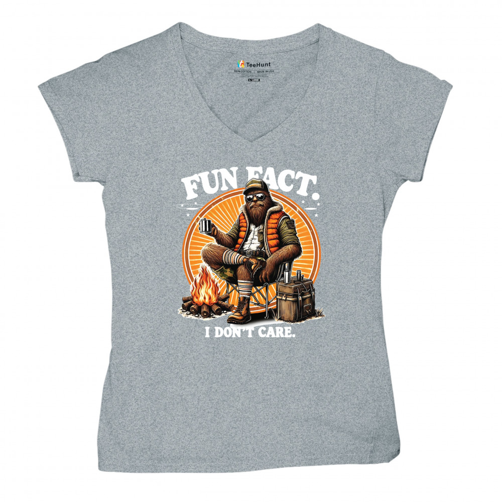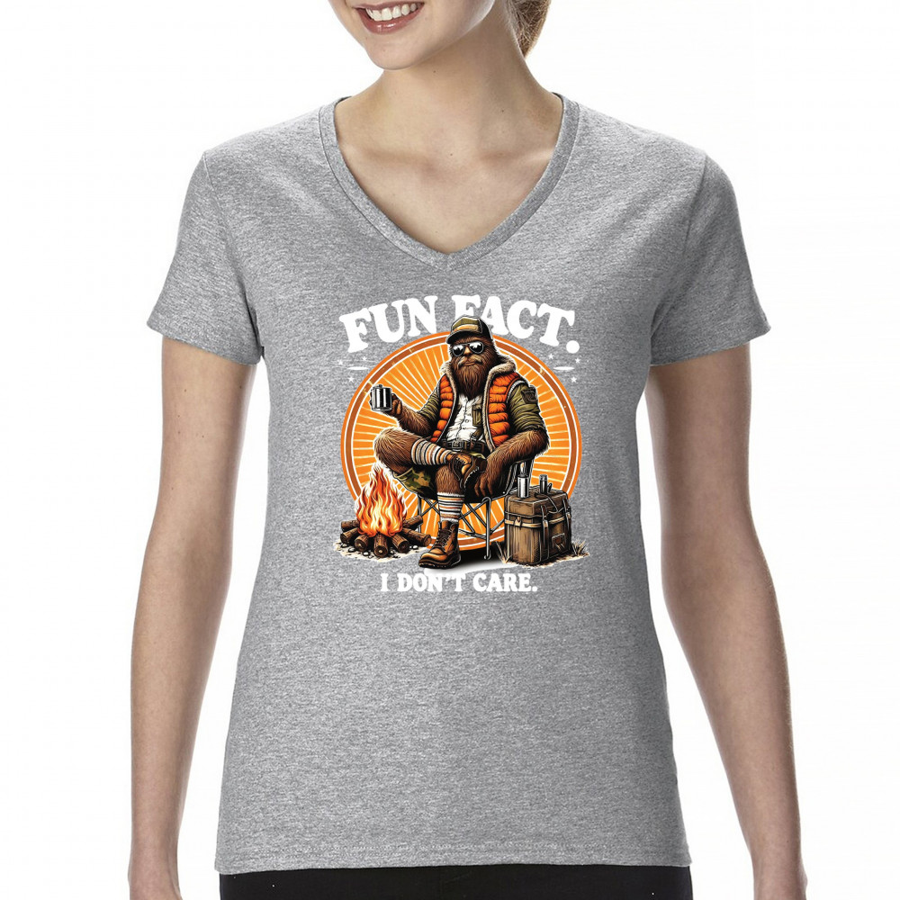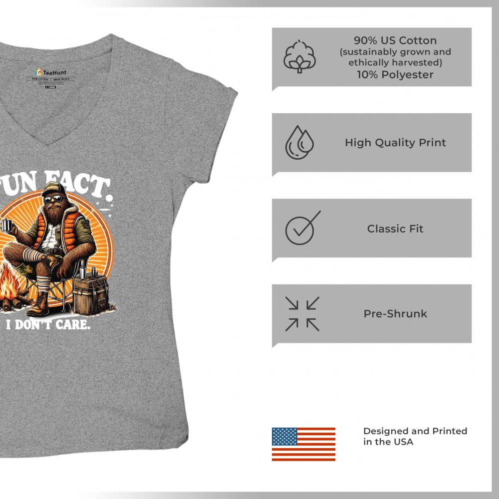 Funny Bigfoot Fun Fact design with cryptid humor, sarcastic outdoors shirt vibe, retro Sasquatch saying, USA pride, and camping adventure style.