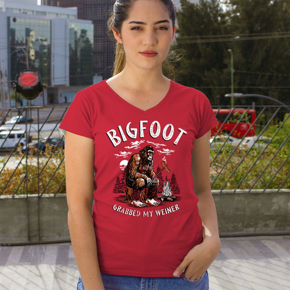 The Bigfoot Grabbed My Weiner design brings cheeky campfire humor to your outdoor adventures. Featuring a cartoon-style Sasquatch roasting a sausage by the fire, it’s perfect for cryptid lovers, campers, and jokesters. Ideal for BBQs, bonfires, forest festivals, and anyone who enjoys weiner jokes with their wilderness.