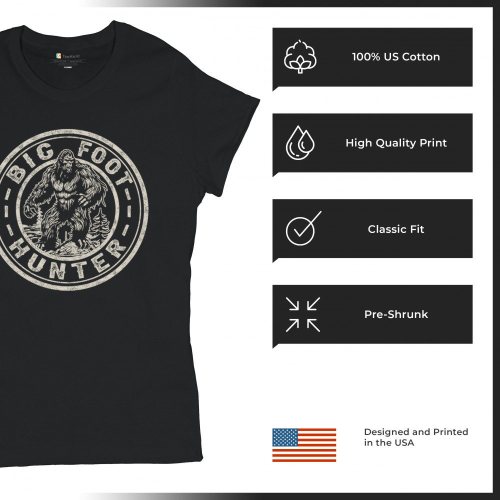 Capture the spirit of adventure with the "Bigfoot Hunter" design! Perfect for cryptid fans and outdoor enthusiasts, featuring a bold Sasquatch graphic.