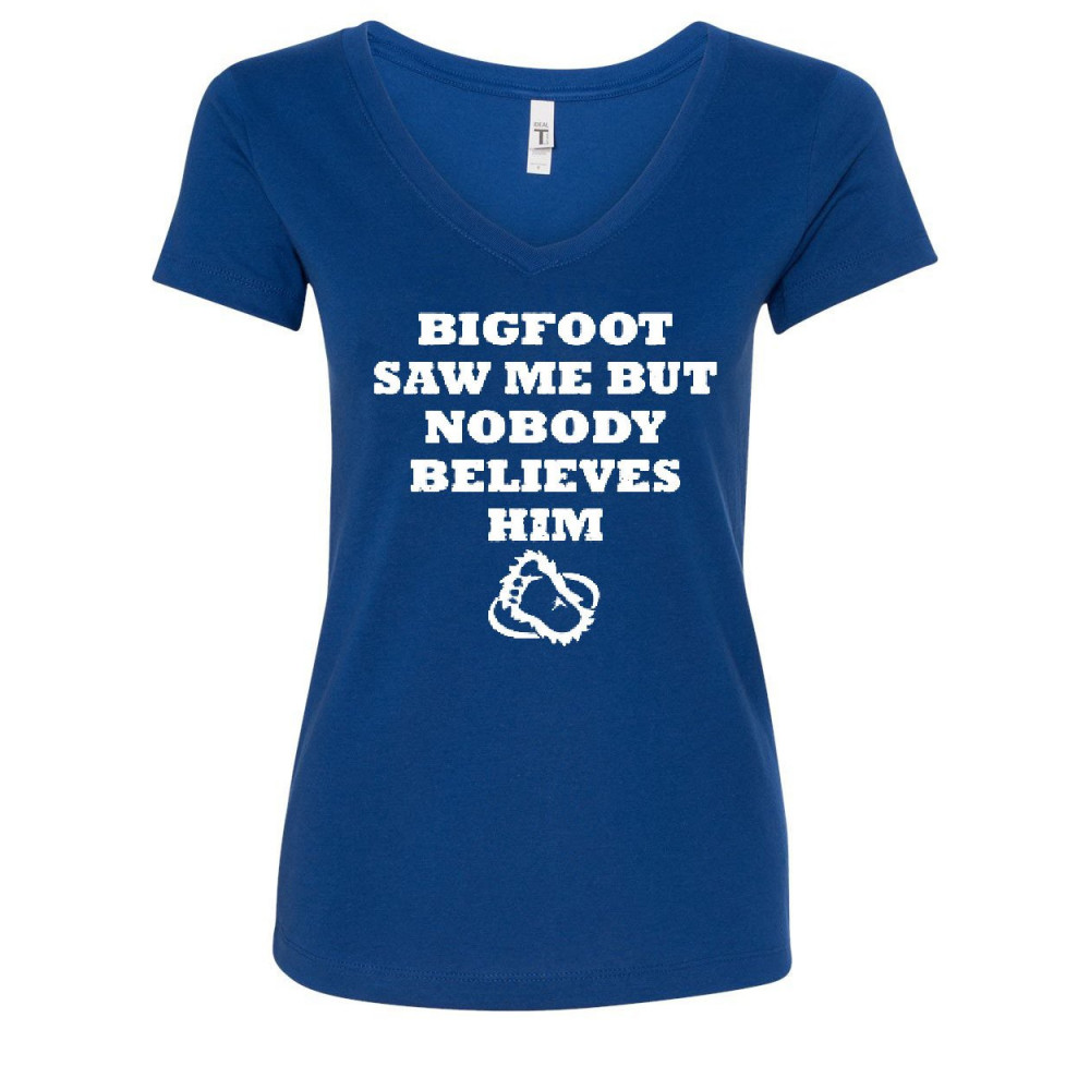 BIGFOOT SAW ME BUT NOBODY BELIEVES HIM v-neck t-shirt funny royal blue